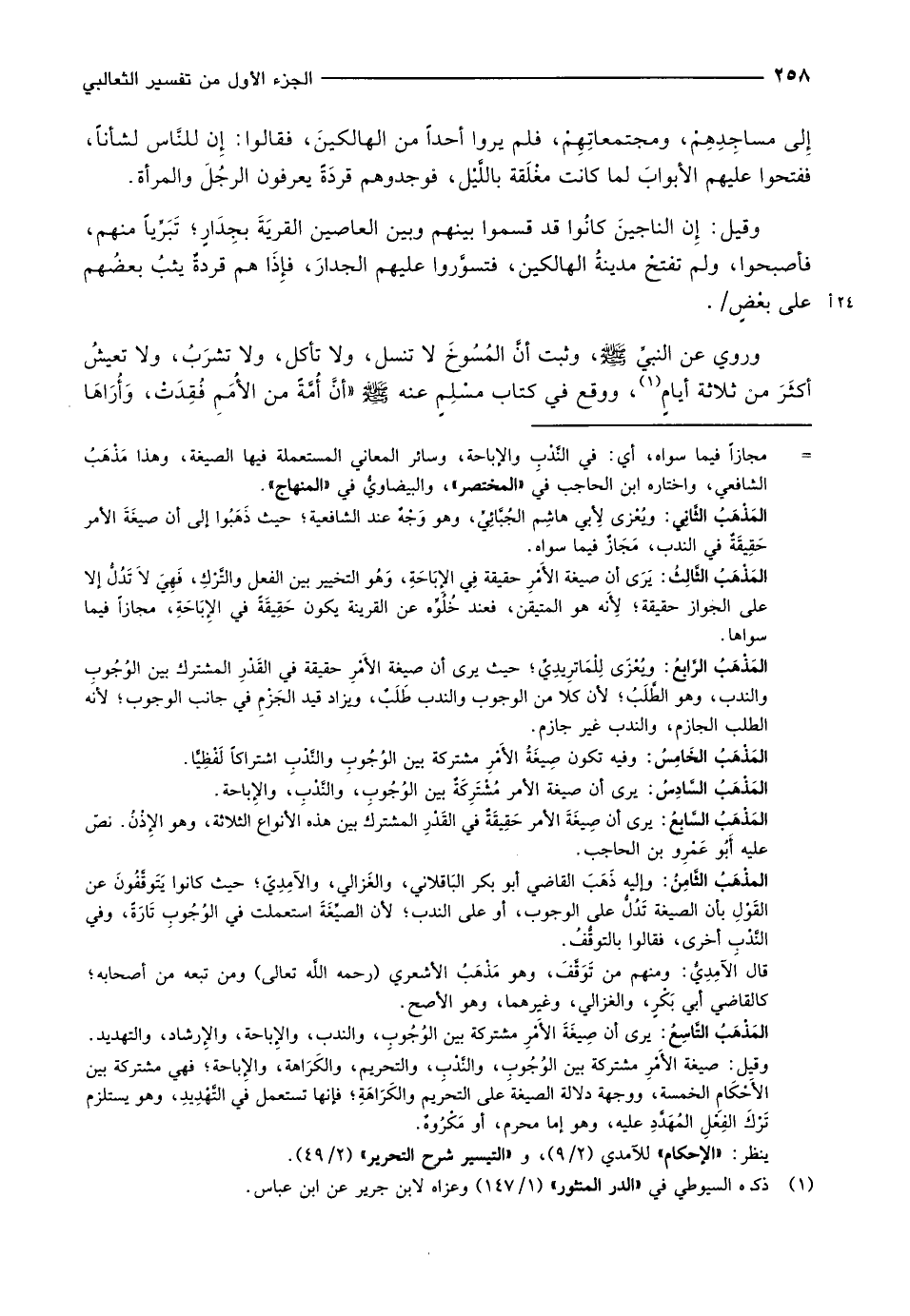 المذهب الثّامن: وإليه ذهب القاضي أبو بكر الباقلاني، والغزالي، والآمديّ حيث كانوا يتوقّفون عن القول بأن الصيغة تدلّ على الوجوب، أو على الندب لأن الصيغة استعملت في الوجوب تارة، وفي النّدب أخرى، فقالوا بالتوقّف.