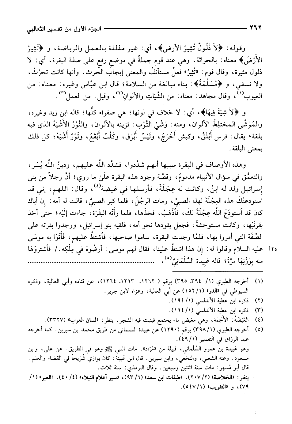 (5) أخرجه الطبري (1/ 398) برقم (1290) عن عبيدة السلماني من طريق محمد بن سيرين. كما أخرجه عبد الرزاق في التفسير (1/ 49) .