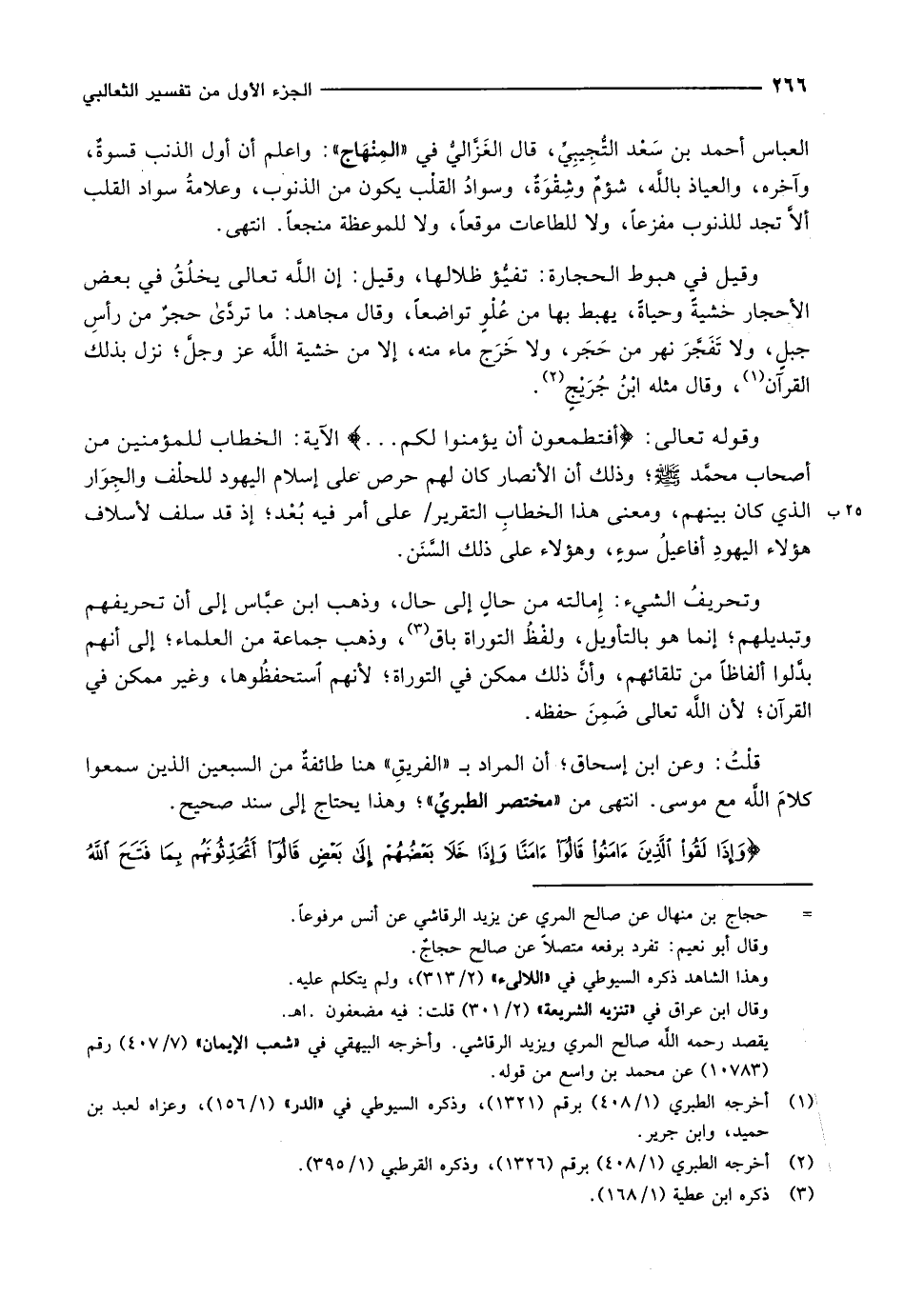 قلْتُ: وعن ابن إسحاق أن المراد ب «الفريقِ» هنا طائفةٌ من السبعين الذين سمعوا كلامَ اللَّه مع موسى. انتهى من «مختصر الطبريِّ» وهذا يحتاج إلى سند صحيح.