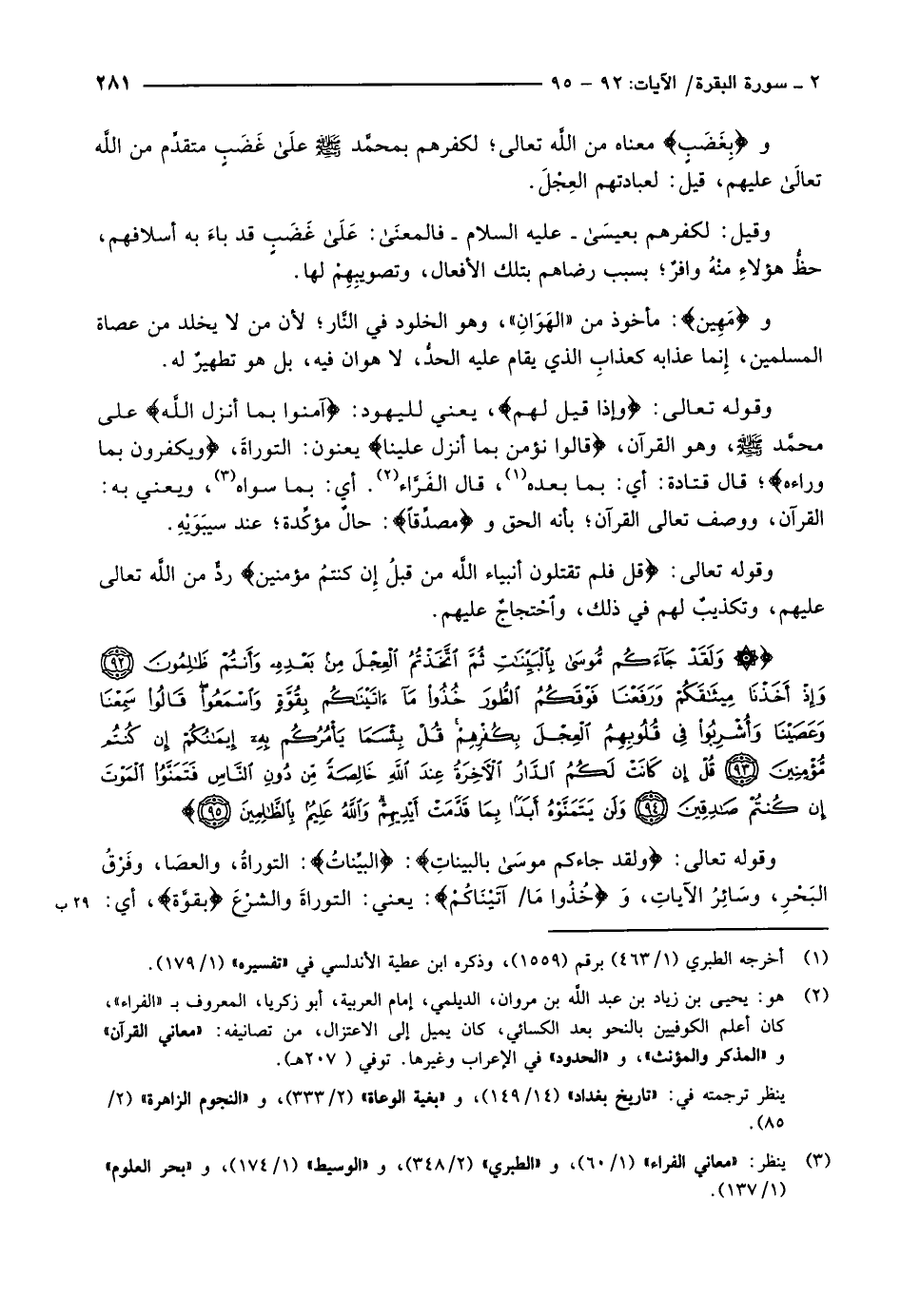 (3) ينظر: «معاني الفراء» (1/ 60) ، و «الطبري» (2/ 348) ، و «الوسيط» (1/ 174) ، و «بحر العلوم» (1/ 137) .