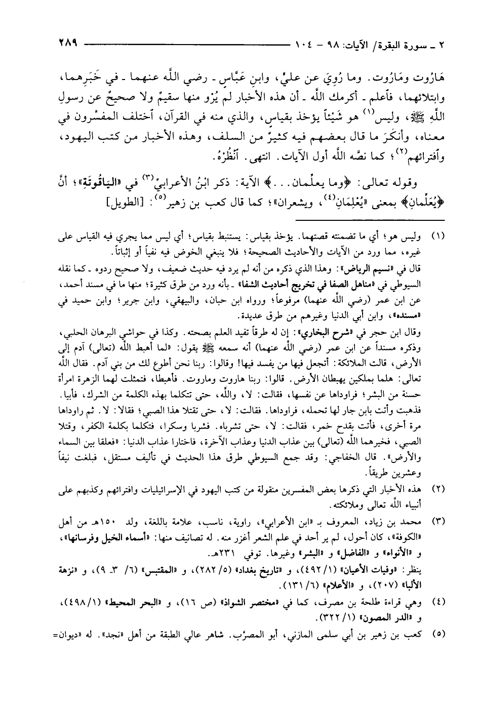 (2) هذه الأخبار التي ذكرها بعض المفسرين منقولة من كتب اليهود في الإسرائيليات وافترائهم وكذبهم على أنبياء الله تعالى وملائكته.