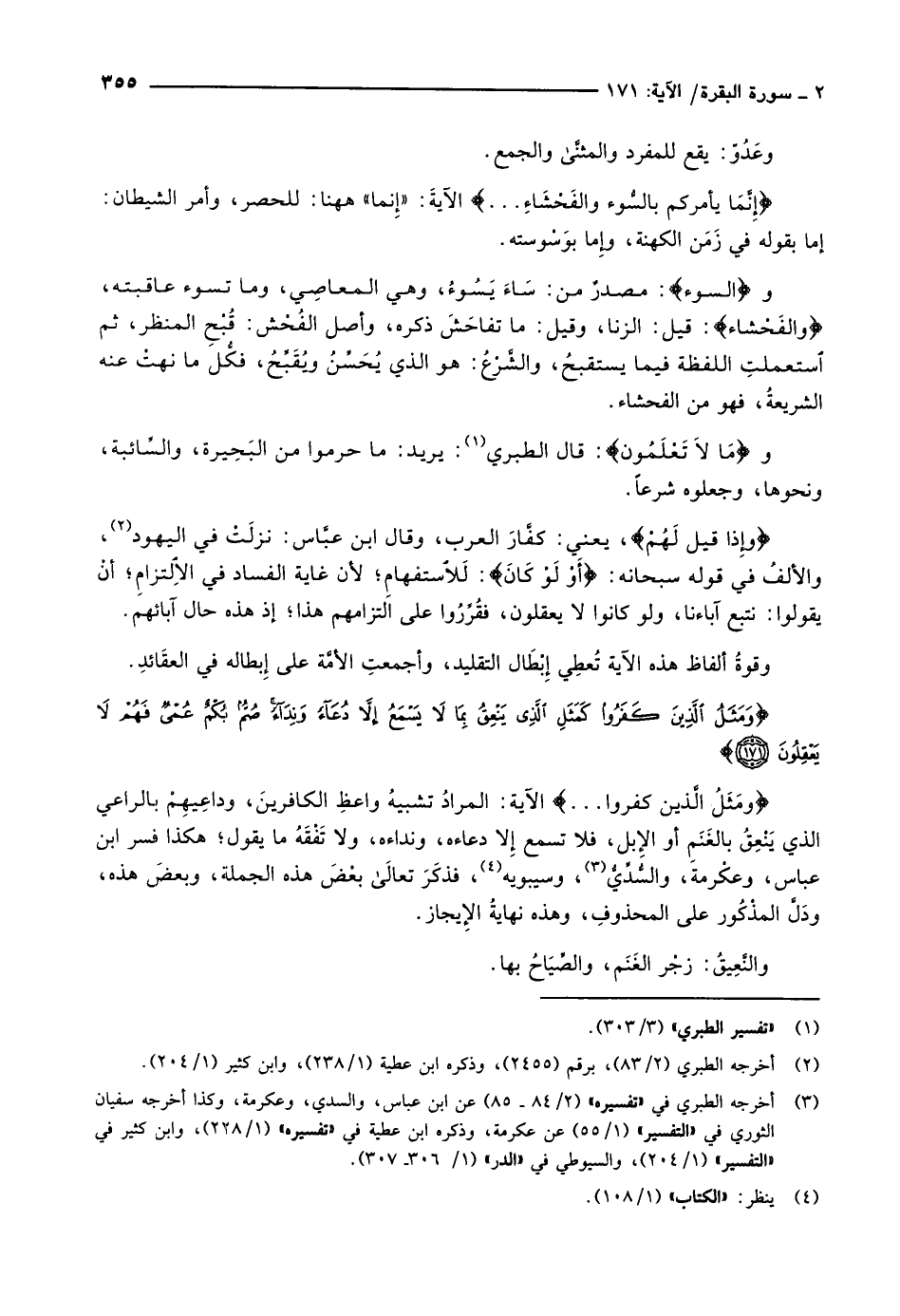 وَمَثَلُ الَّذِينَ كَفَرُوا كَمَثَلِ الَّذِي يَنْعِقُ بِما لا يَسْمَعُ إِلاَّ دُعاءً وَنِداءً صُمٌّ بُكْمٌ عُمْيٌ فَهُمْ لا يَعْقِلُونَ (171)