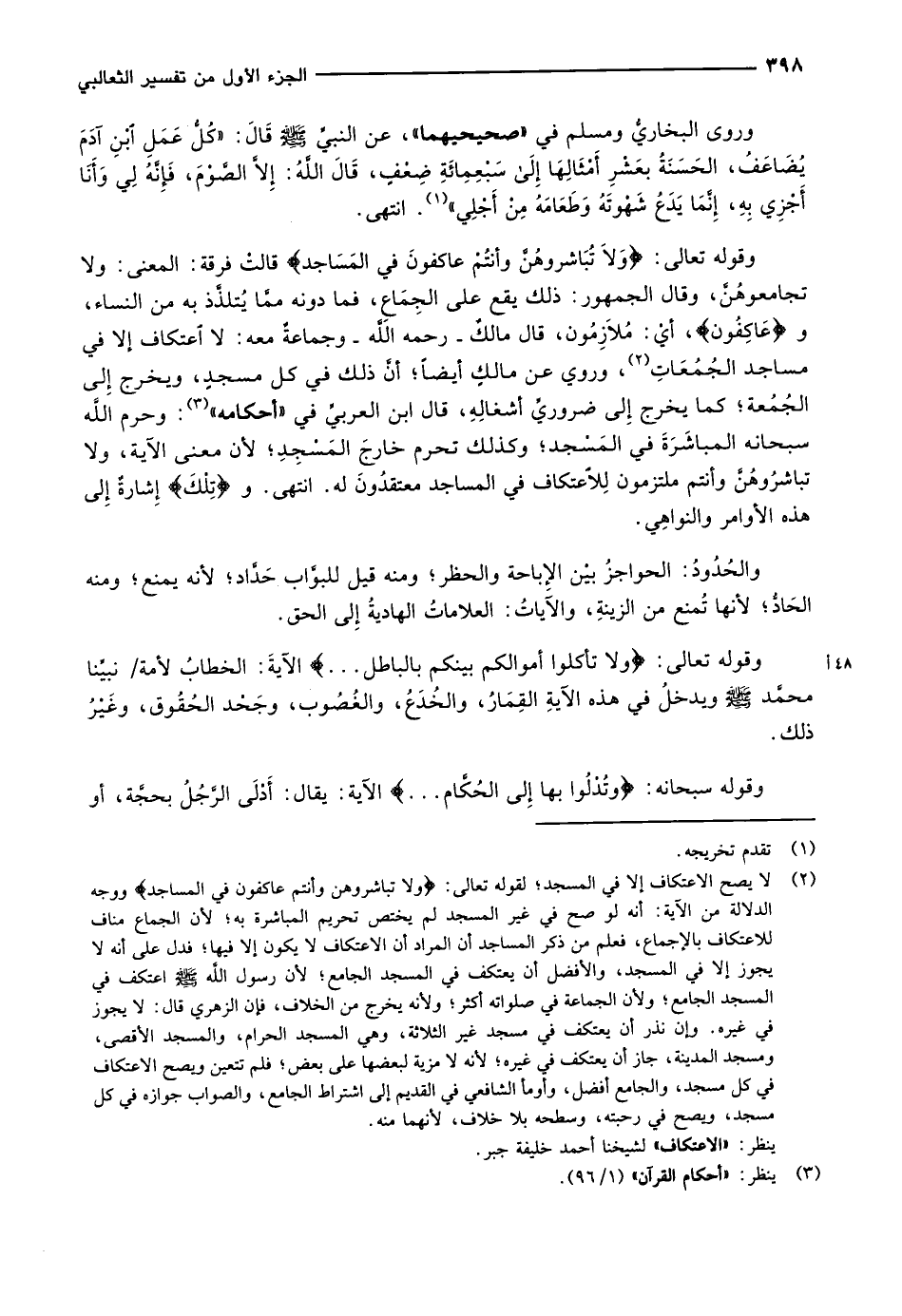 ينظر: «الاعتكاف» لشيخنا أحمد خليفة جبر.