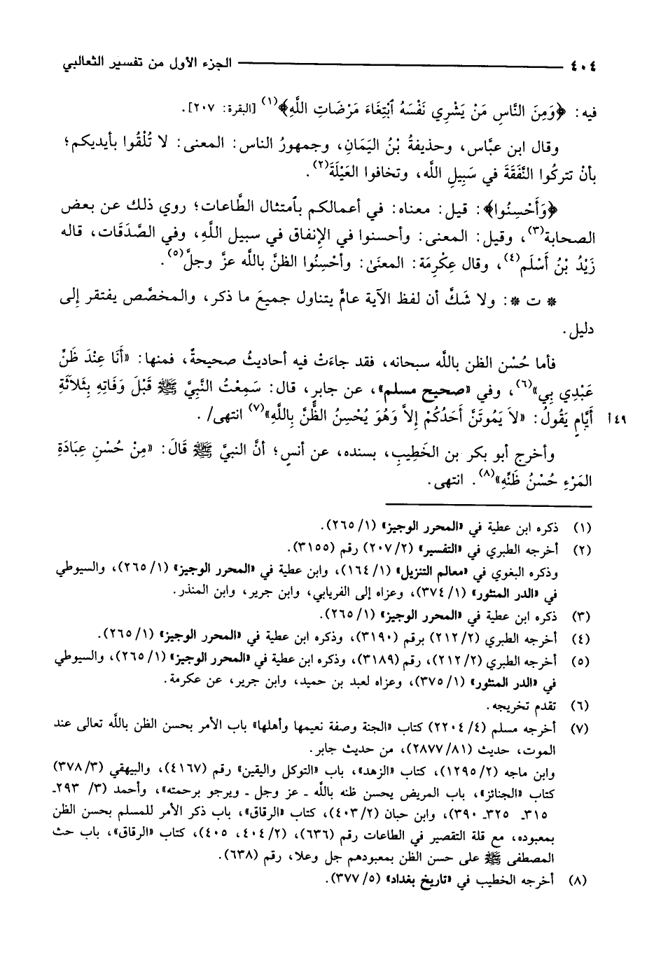 فأما حُسْن الظن باللَّه سبحانه، فقد جاءَتْ فيه أحاديثُ صحيحةٌ، فمنها: «أَنَا عِنْدَ ظَنِّ عَبْدِي بِي» «6» ، وفي «صحيح مسلم» ، عن جابر، قال: سمعت النّبيّ صلّى الله عليه وسلم قبل وفاته بثلاثة 49 أأيّام يَقُولُ: «لاَ يَمُوتَنَّ أَحَدُكُمْ إِلاَّ وَهُوَ يُحْسِنُ الظَّنَّ بِاللَّهِ» «7» انتهى/.