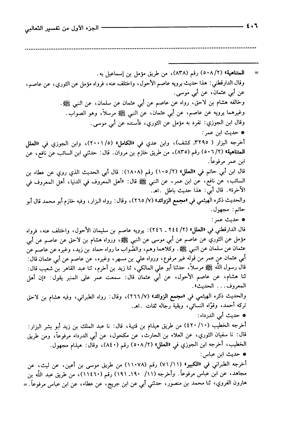 وقال الدارقطني: هذا حديث يرويه عاصم الأحول، واختلف عنه، فرواه مؤمل عن الثوري، عن عاصم، عن أبي عثمان، عن أبي موسى.