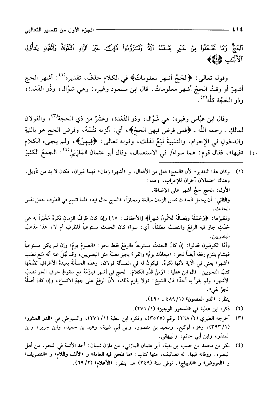 (1) وكان هذا التقدير لأن «الحج» فعل من الأفعال، و «أشهر» زمان فهما غيران، فكان لا بد من تأويل.