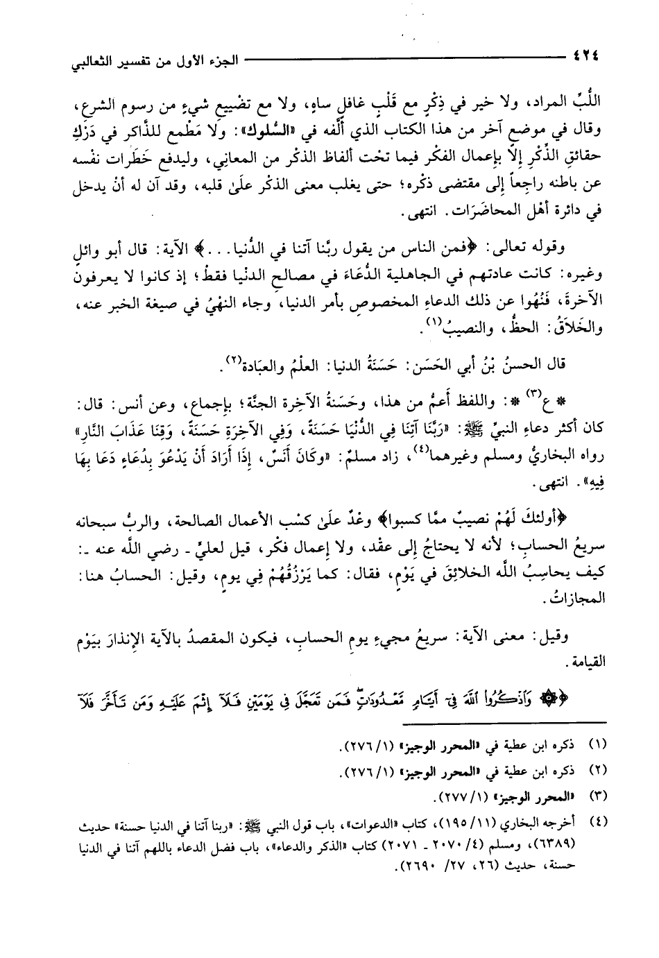 ع «3» : واللفظ أَعمُّ من هذا، وحَسَنةُ الآخِرة الجنَّة بإِجماع، وعن أنس: قال: