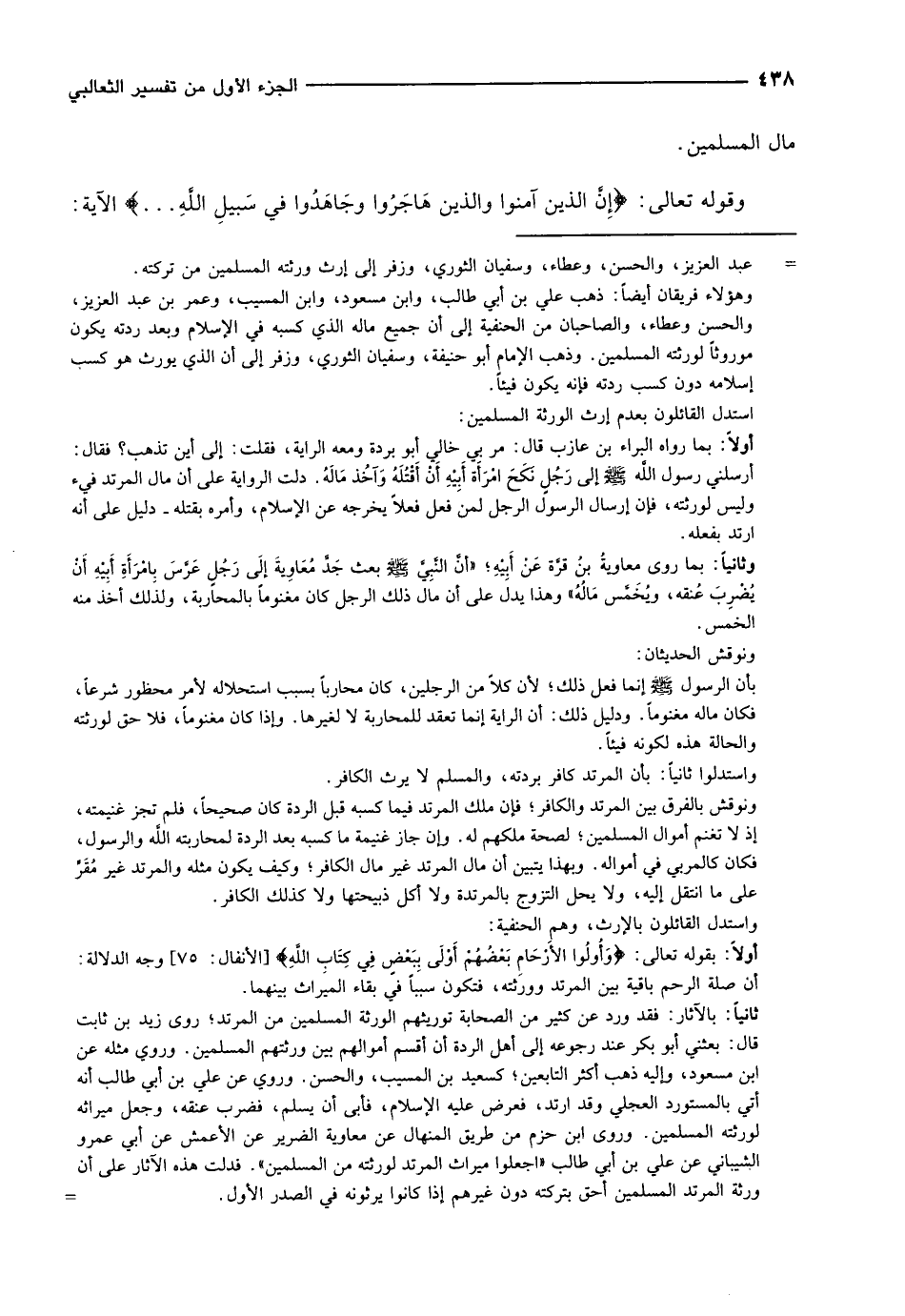 - عبد العزيز، والحسن، وعطاء، وسفيان الثوري، وزفر إلى إرث ورثته المسلمين من تركته.