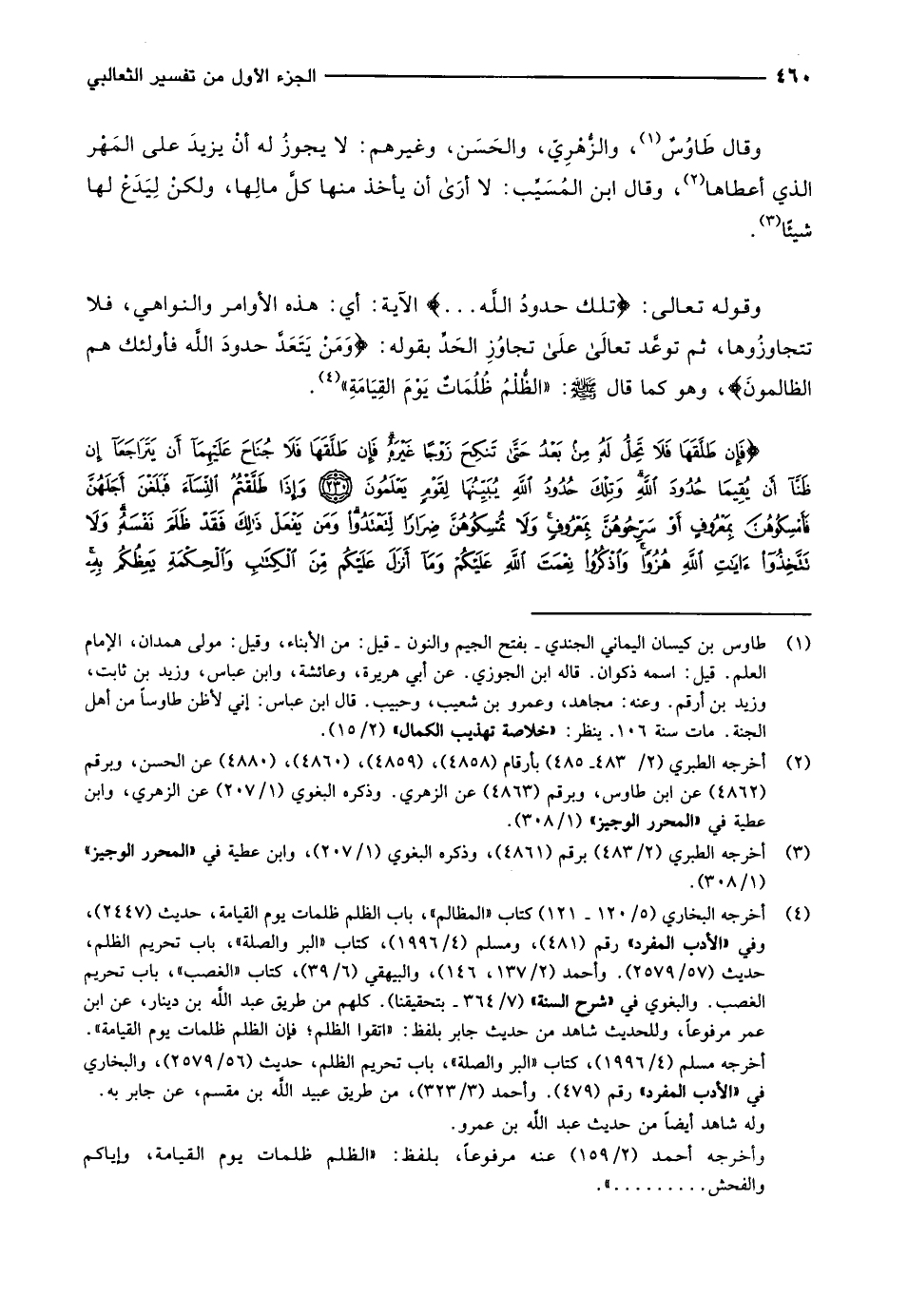 (1) طاوس بن كيسان اليماني الجندي- بفتح الجيم والنون- قيل: من الأبناء، وقيل: مولى همدان، الإمام العلم. قيل: اسمه ذكوان. قاله ابن الجوزي. عن أبي هريرة، وعائشة، وابن عباس، وزيد بن ثابت، وزيد بن أرقم. وعنه: مجاهد، وعمرو بن شعيب، وحبيب. قال ابن عباس: إني لأظن طاوسا من أهل الجنة. مات سنة 106. ينظر: «خلاصة تهذيب الكمال» (2/ 15) .