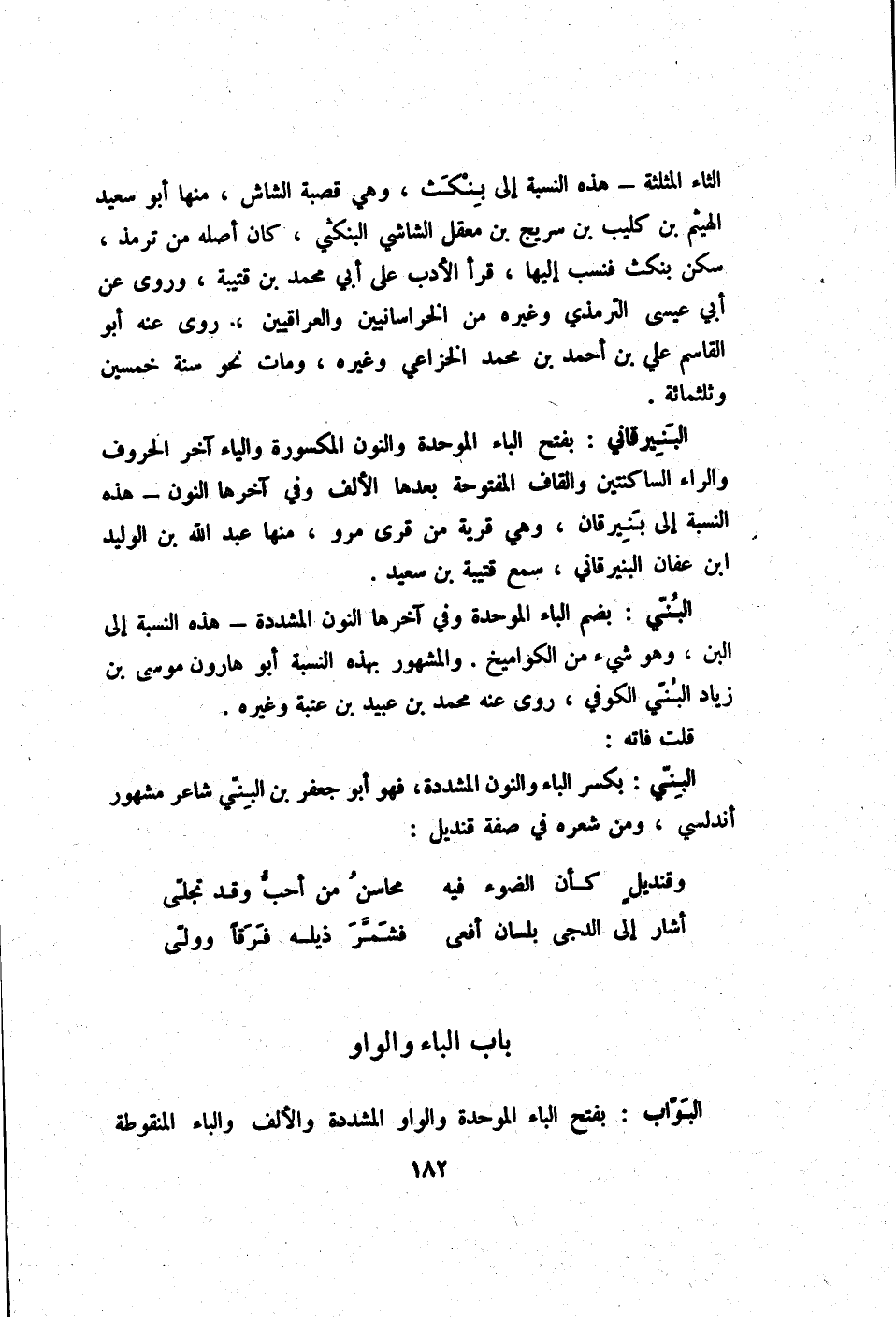 البني بِكَسْر الْبَاء وَالنُّون الْمُشَدّدَة فَهُوَ أَبُو جَعْفَر بن البني شَاعِر مَشْهُور أندلسي وَمن شعره فِي صفة قنديل