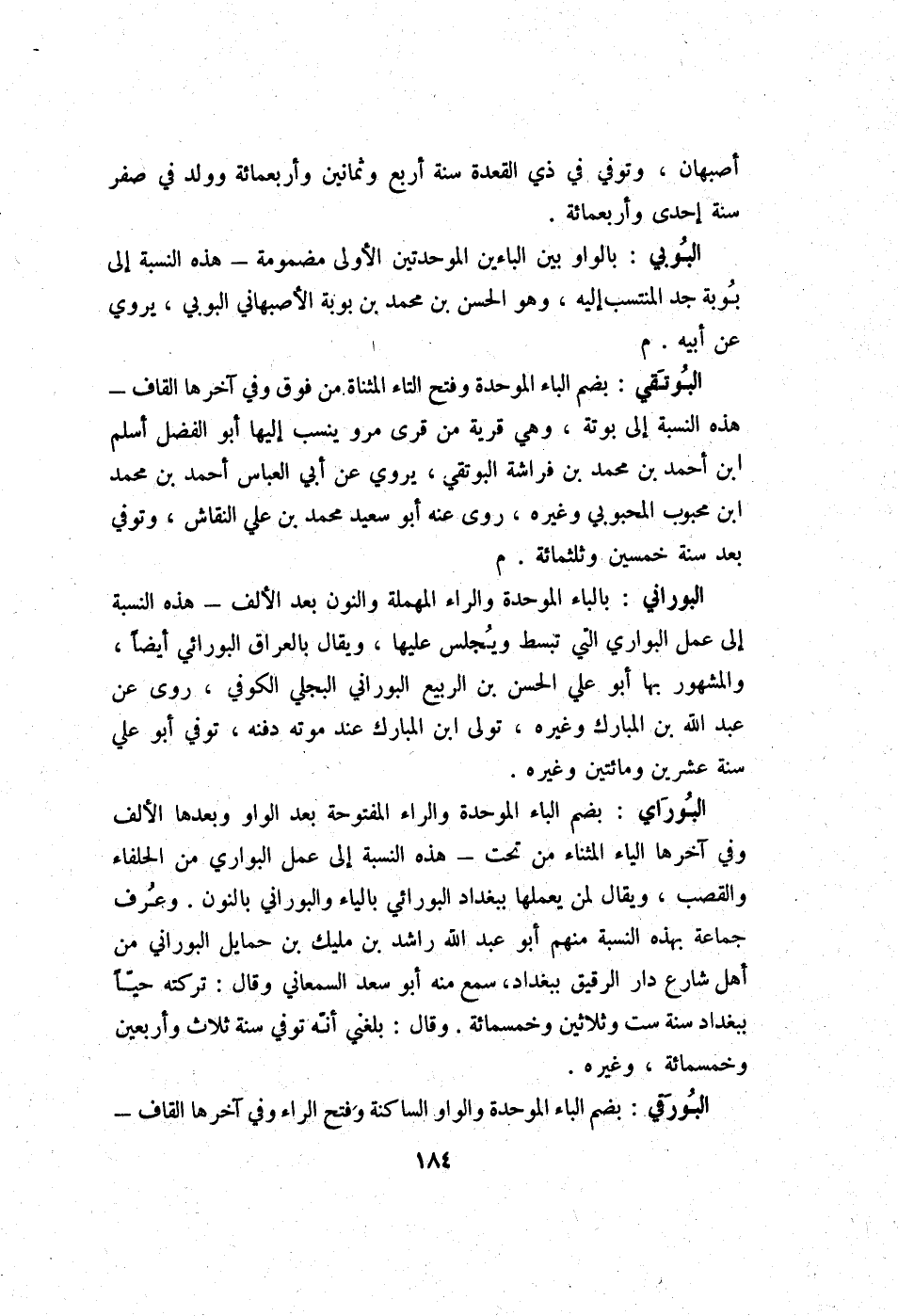 البوبي بِالْوَاو بَين الباءين الموحدتين الأولى مَضْمُومَة - هَذِه النِّسْبَة إِلَى بوبة جد المنتسب إِلَيْهِ وَهُوَ الْحسن بن مُحَمَّد بن بوبة الْأَصْبَهَانِيّ البوبي يروي عَن أَبِيه م
