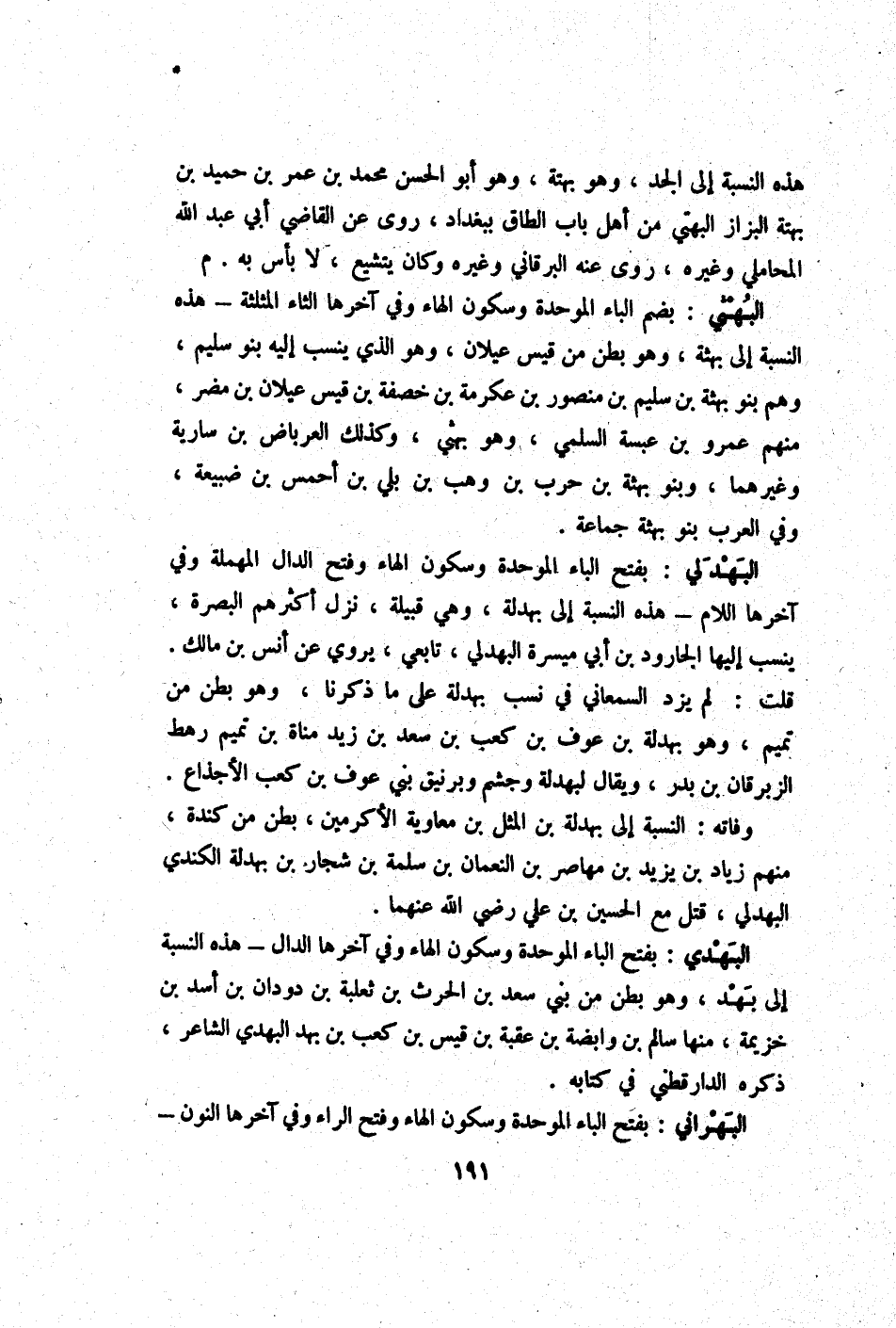 البهثي بِضَم الْبَاء الْمُوَحدَة وَسُكُون الْهَاء وَفِي آخرهَا الثَّاء الْمُثَلَّثَة - هَذِه النِّسْبَة إِلَى بهثة وَهُوَ بطن من قيس عيلان وَهُوَ الَّذِي ينْسب إِلَيْهِ بَنو سليم وهم بَنو بهثة بن سليم بن مَنْصُور بن عِكْرِمَة بن خصفة بن قيس عيلان بن مُضر مِنْهُم عَمْرو بن عبسة السّلمِيّ وَهُوَ بهثي وَكَذَلِكَ الْعِرْبَاض بن سَارِيَة وَغَيرهمَا وَبَنُو بهثة بن حَرْب بن وهب بن بلي بن أحمس بن ضبيعة وَفِي الْعَرَب بَنو بهثة جمَاعَة