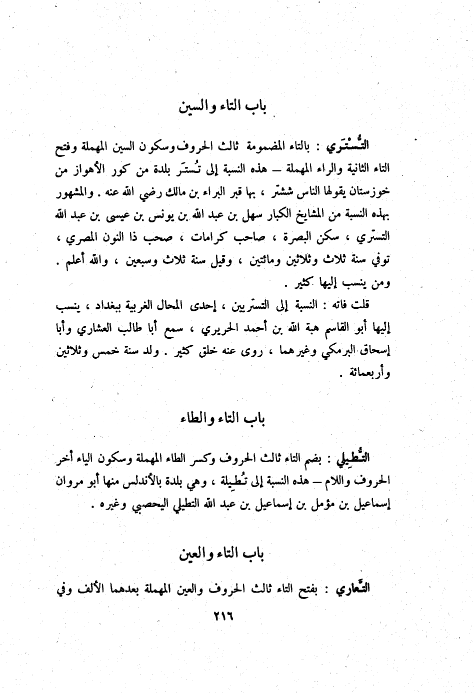 قلت فَاتَهُ النِّسْبَة إِلَى التستريين إِحْدَى الْمحَال الغربية بِبَغْدَاد ينْسب إِلَيْهَا أَبُو الْقَاسِم هبة الله بن أَحْمد الحريري سمع أَبَا طَالب العشاري وَأَبا إِسْحَاق الْبَرْمَكِي وَغَيرهمَا روى عَنهُ خلق كثير ولد سنة خمس وَثَلَاثِينَ وَأَرْبَعمِائَة