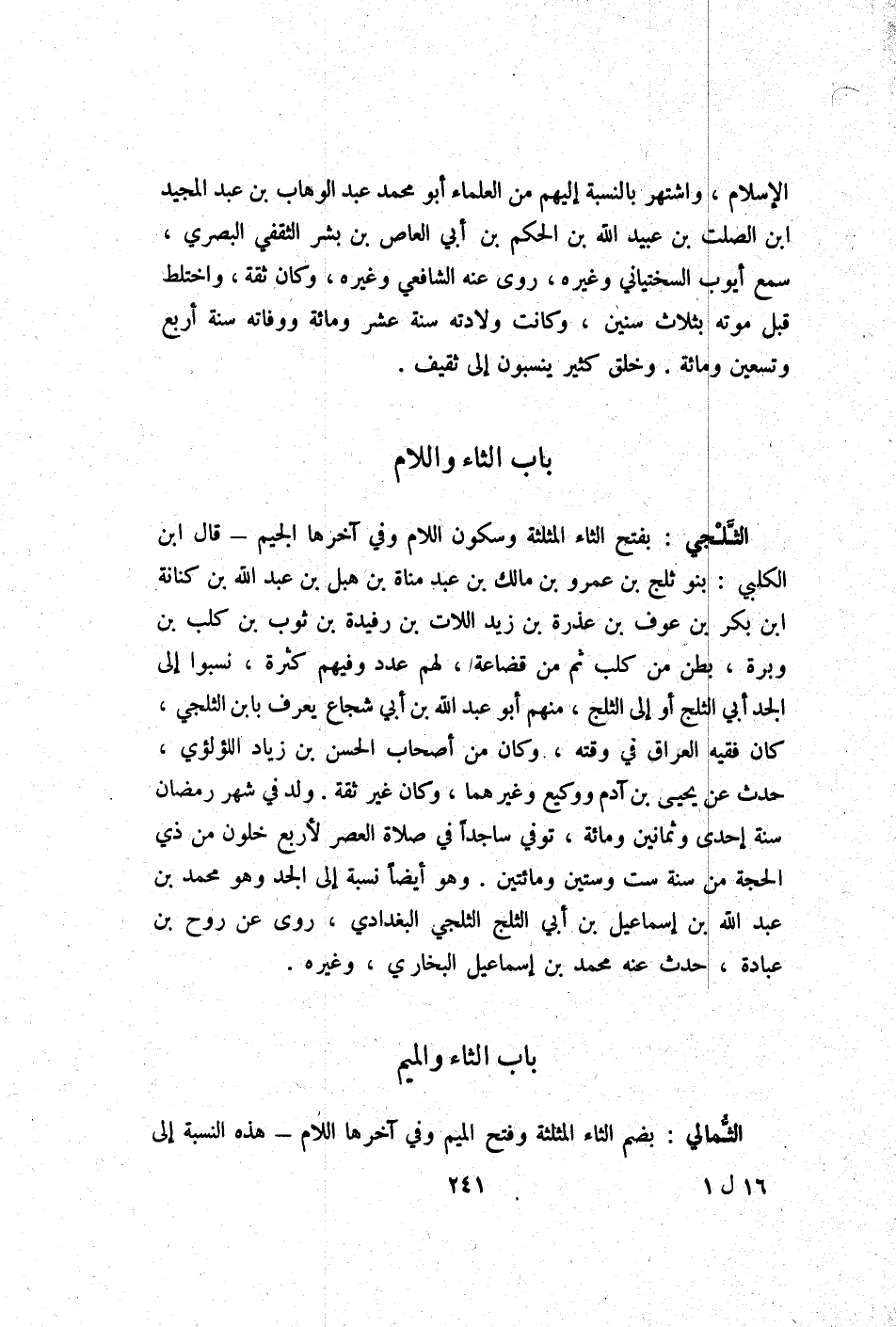 - بَاب الثَّاء وَاللَّام