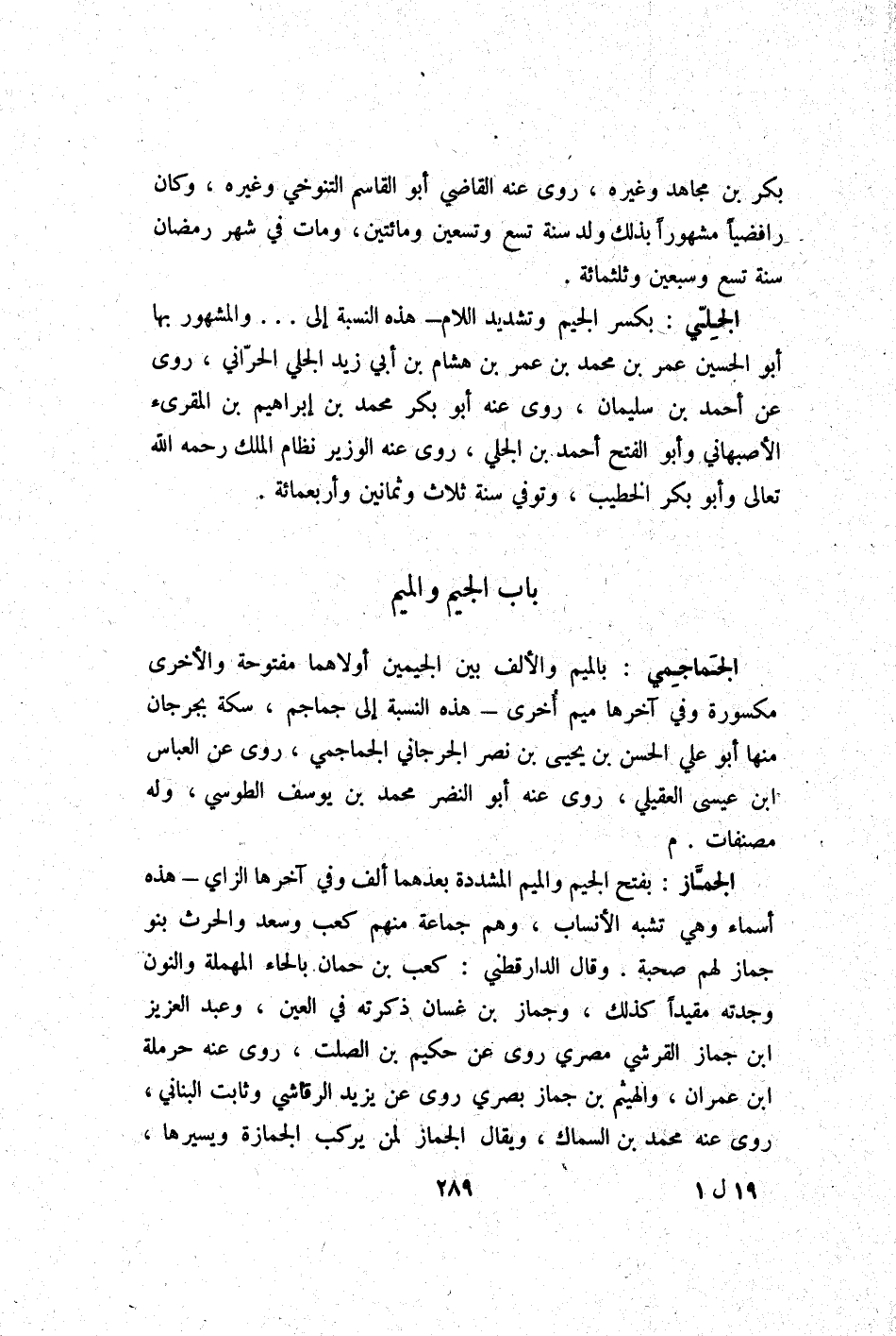 الْجَلِيّ بِكَسْر الْجِيم وَتَشْديد اللَّام - هَذِه النِّسْبَة إِلَى ... وَالْمَشْهُور بهَا أَبُو الْحُسَيْن عمر بن مُحَمَّد بن عمر بن هِشَام بن أبي زيد الْجَلِيّ الْحَرَّانِي روى عَن أَحْمد بن سُلَيْمَان روى عَنهُ أَبُو بكر مُحَمَّد بن إِبْرَاهِيم بن المقرىء الْأَصْبَهَانِيّ وَأَبُو الْفَتْح أَحْمد بن الْجَلِيّ روى عَنهُ الْوَزير نظام الْملك رَحمَه الله تَعَالَى وَأَبُو بكر الْخَطِيب وَتُوفِّي سنة ثَلَاث وَثَمَانِينَ وَأَرْبَعمِائَة