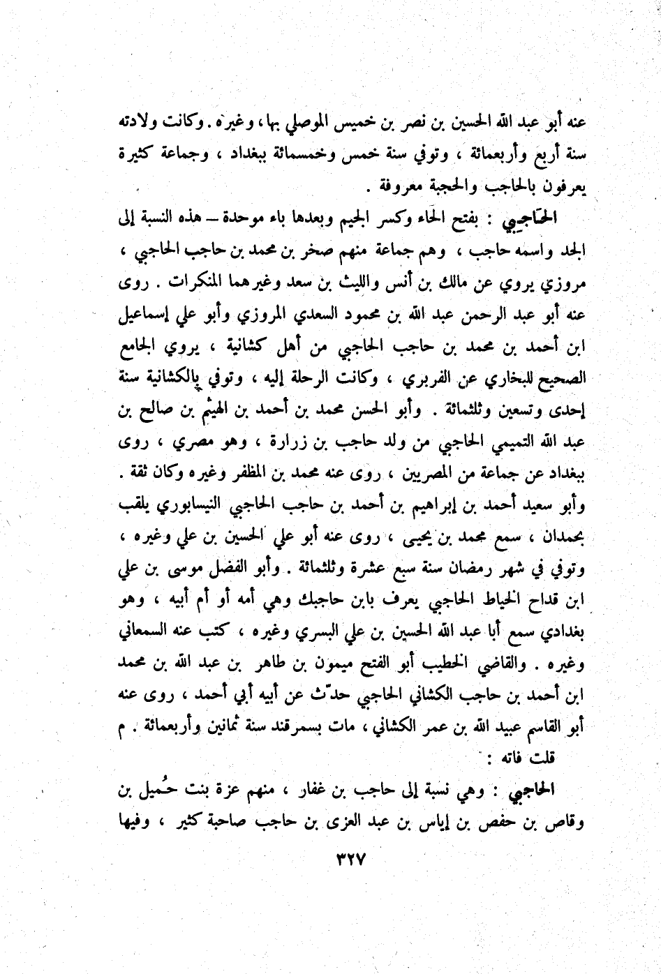 عَنهُ أَبُو عبد الله الْحُسَيْن بن نصر بن خَمِيس الْموصِلِي بهَا وَغَيره وَكَانَت وِلَادَته سنة أَربع وَأَرْبَعمِائَة وَتُوفِّي سنة خمس وَخَمْسمِائة بِبَغْدَاد وَجَمَاعَة كَثِيرَة يعْرفُونَ بالحاجب والحجبة مَعْرُوفَة