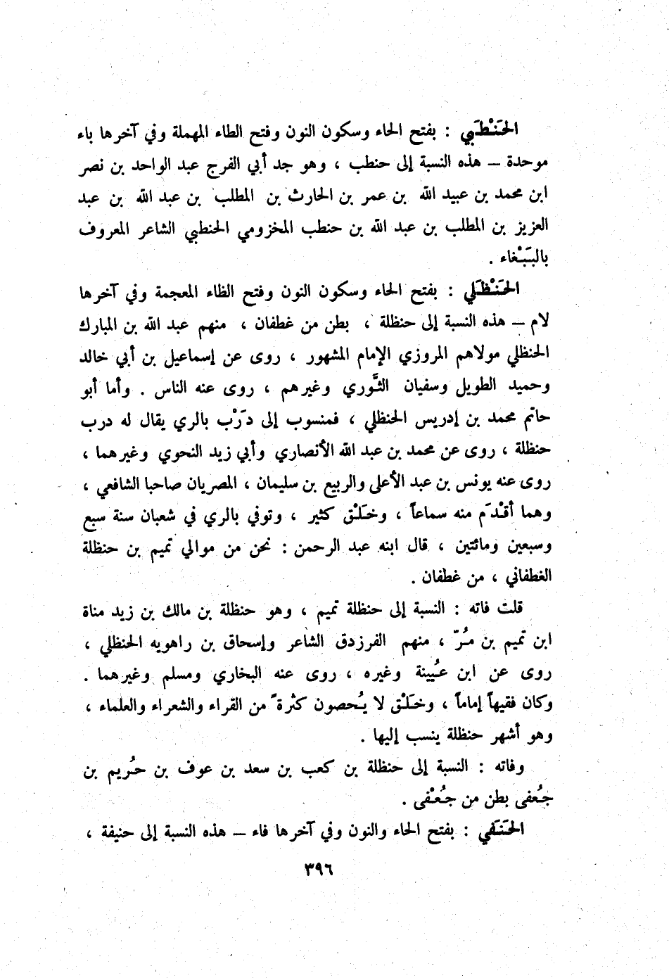 قلت فَاتَهُ النِّسْبَة إِلَى حَنْظَلَة تَمِيم وَهُوَ حَنْظَلَة بن مَالك بن زيد مَنَاة ابْن تَمِيم بن مر مِنْهُم الفرزدق الشَّاعِر وَإِسْحَاق بن رَاهَوَيْه الْحَنْظَلِي روى عَن ابْن عُيَيْنَة وَغَيره روى عَنهُ البُخَارِيّ وَمُسلم وَغَيرهمَا وَكَانَ فَقِيها إِمَامًا وَخلق لَا يُحصونَ كَثْرَة من الْقُرَّاء وَالشعرَاء وَالْعُلَمَاء وَهُوَ أشهر حَنْظَلَة ينْسب إِلَيْهَا