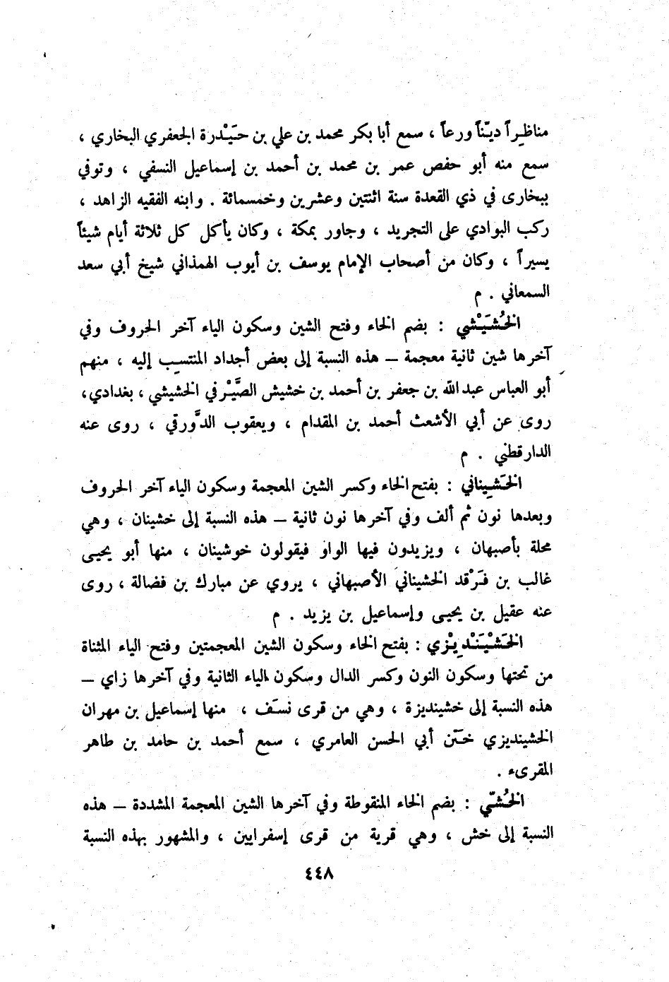 الخشي بِضَم الْخَاء المنقوطة وَفِي آخرهَا الشين الْمُعْجَمَة الْمُشَدّدَة - هَذِه النِّسْبَة إِلَى خش وَهِي قَرْيَة من قرى إسفرايين وَالْمَشْهُور بِهَذِهِ النِّسْبَة