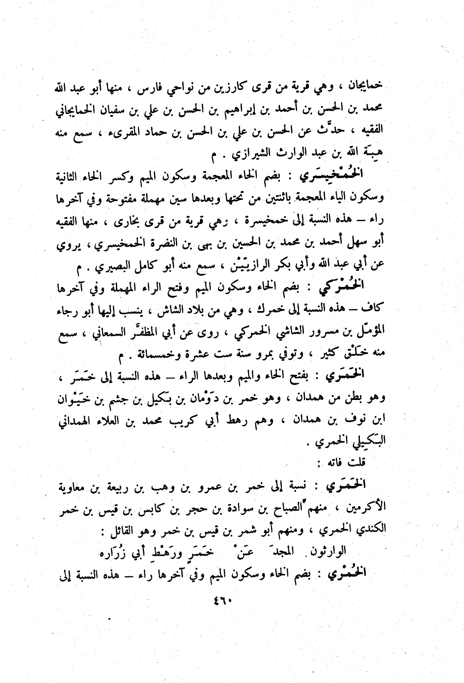 الخمري بِضَم الْخَاء وَسُكُون الْمِيم وَفِي آخرهَا رَاء - هَذِه النِّسْبَة إِلَى