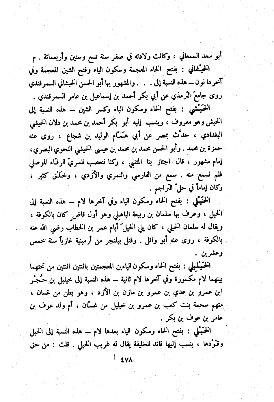 الخيشاني بِفَتْح الْخَاء الْمُعْجَمَة وَسُكُون الْيَاء وَفتح الشين الْمُعْجَمَة وَفِي آخرهَا نون - هَذِه النِّسْبَة إِلَى ... وَالْمَشْهُور بهَا أَبُو الْحسن الخيشاني السَّمرقَنْدِي روى جَامع التِّرْمِذِيّ عَن أبي بكر أَحْمد بن إِسْمَاعِيل بن عَامر السَّمرقَنْدِي