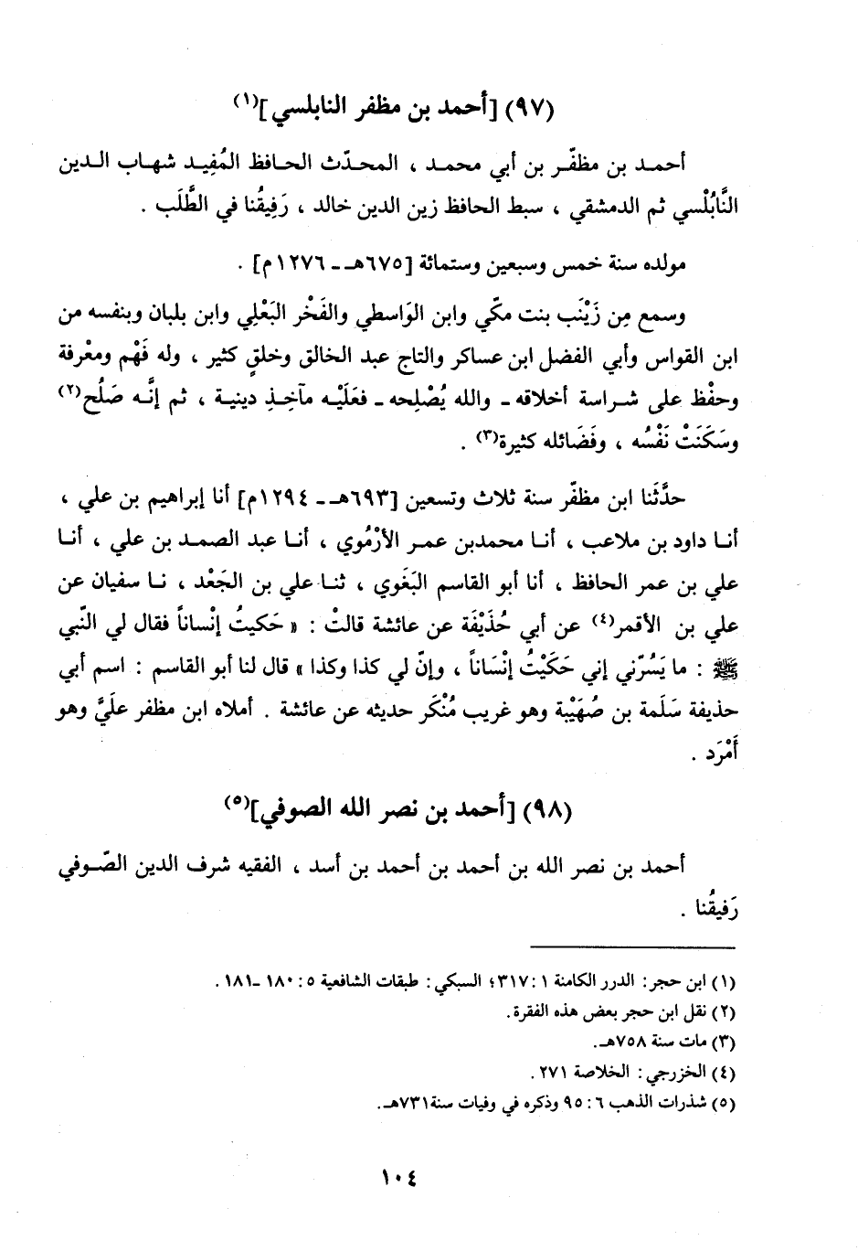 أَحْمَدُ بْنُ مُظَفَّرِ بْنِ أَبِي مُحَمَّدٍ الْمُحَدِّثُ الْحَافِظُ الْمُفِيدُ شِهَابُ الدِّينِ النَّابُلْسِيُّ ثُمَّ الدِّمَشْقِيُّ سِبْطُ الْحَافِظِ زَيْنِ الدِّينِ خَالِدٌ