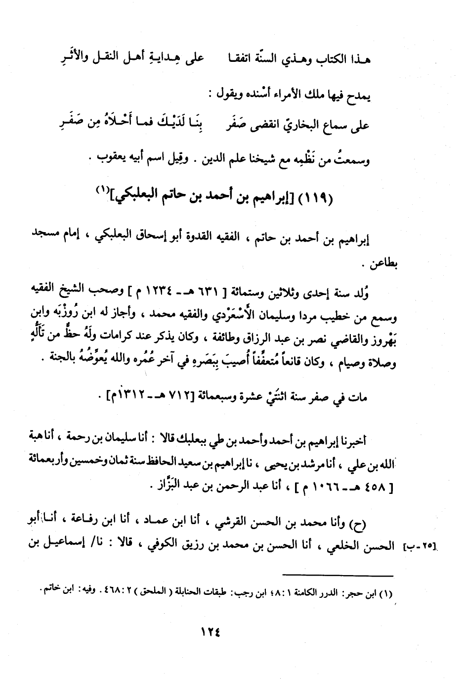 إِبْرَاهِيمُ بْنُ أَحْمَدَ بْنِ حَاتِمٍ الْفَقِيهُ الْقُدْوَةُ أَبُو إِسْحَاقَ الْبَعْلَبَكِّيُّ إِمَامُ مَسْجِدٍ بِطَاعِنٍ