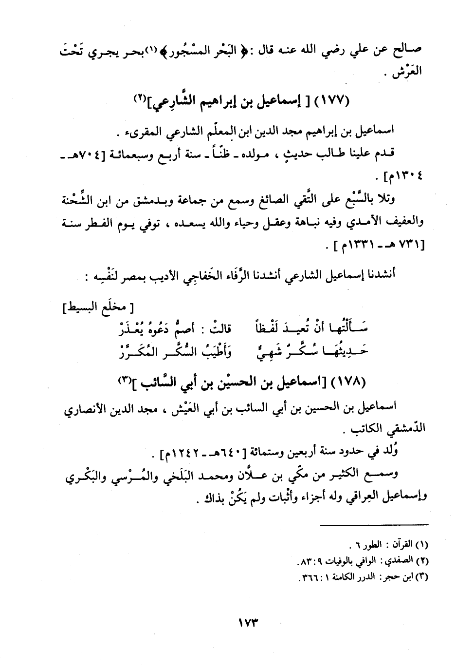 أَنْشَدَنَا إِسْمَاعِيلُ الشَّارِعِيُّ، أَنْشَدَنَا الرَّفَّاءُ الْخَفَاجِيُّ الأَدِيبُ، بِمِصْرَ لِنَفْسِهِ: