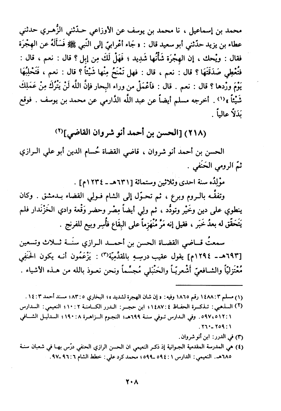 الْحَسَنُ بْنُ أَحْمَدَ أَنُو شروَانَ قَاضِي الْقُضَاةِ حُسَامُ الدِّينِ أَبُو عَلِيٍّ الرَّازِيُّ ثُمَّ الرُّومِيُّ الْحَنَفِيُّ
