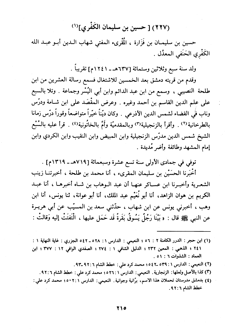 حُسَيْنُ بْنُ سُلَيْمَانَ بْنِ فَزَارَةَ الْمُقْرِئُ الْمُفْتِي شِهَابُ الدِّينِ أَبُو عَبْدِ اللَّهِ الْكَفْرِيُّ الْحَنَفِيُّ الْمُعَدَّلُ