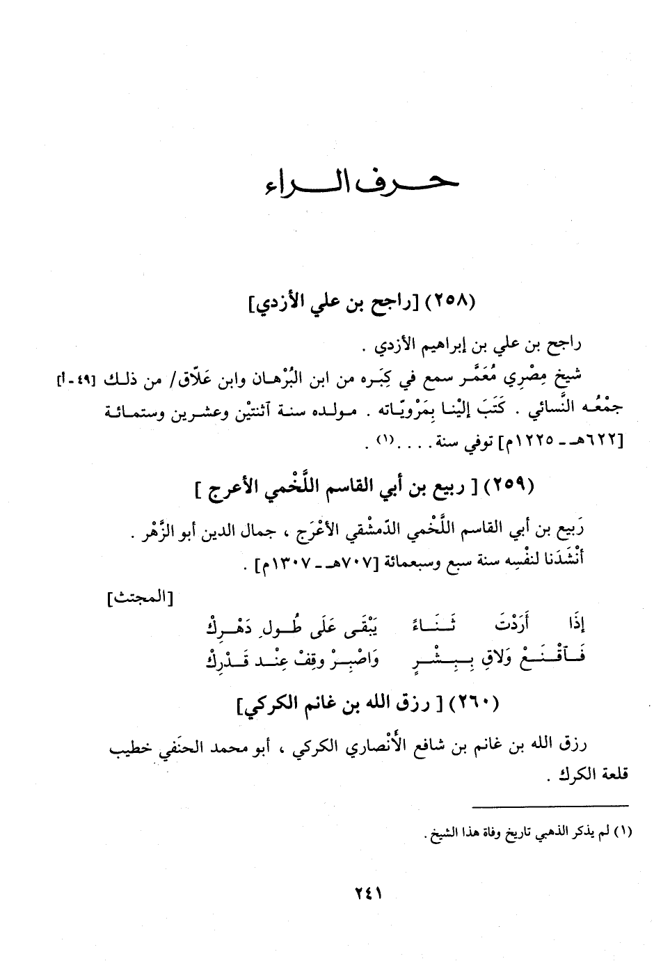 مَوْلِدُهُ سَنَةَ اثْنَتَيْنِ وَعِشْرِينَ وَسِتِّ مِائَةٍ تُوُفِّيَ سَنَةَ.....