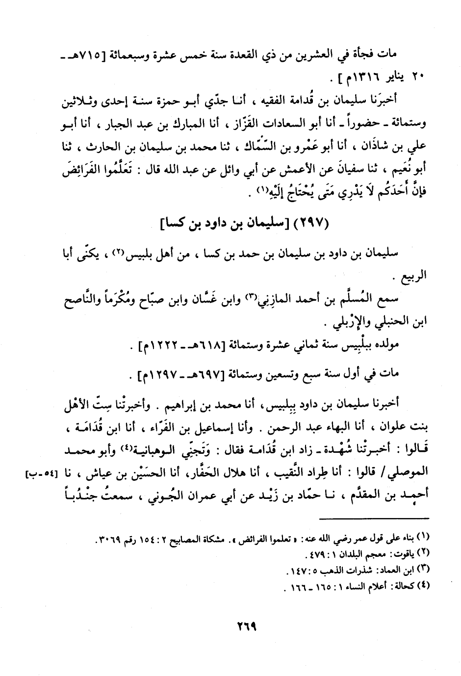 -10 - 1: 164 - أَخْبَرَنَا سُلَيْمَانُ بْنُ قُدَامَةَ الْفَقِيهُ، أنا جَدِّي أَبُو حَمْزَةَ، سَنَةَ إِحْدَى وَثَلاثِينَ وَسِتِّ مِائَةٍ، حُضُورًا، أنا أَبُو السَّعَادَاتِ الْقَزَّازُ، أنا الْمُبَارَكُ بْنُ عَبْدِ الْجَبَّارِ، أنا أَبُو عَلِيِّ بْنُ شَاذَانَ، أنا أَبُو عَمْرِو بْنُ السَّمَّاكِ، ثنا مُحَمَّدُ بْنُ سُلَيْمَانَ بْنِ الْحَارِثِ، ثنا أَبُو نُعَيْمٍ، ثنا سُفْيَانُ، عَنِ الأَعْمَشِ، عَنْ أَبِي وَائِلٍ، عَنْ عَبْدِ اللَّهِ، قَالَ: تَعَلَّمُوا الْفَرَائِضَ، فَإِنَّ أَحَدَكُمْ لا يَدْرِي مَتَى يَحْتَاجُ إِلَيْهِ