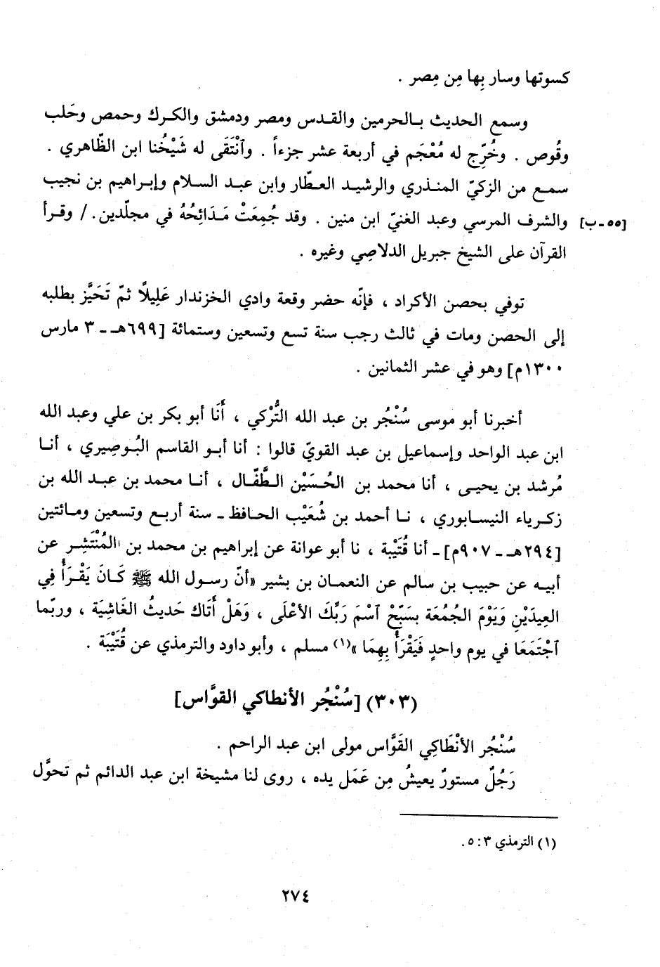 سُنْجُرُ الأَنْطَاكِيُّ الْقَوَّاسُ مَوْلَى ابْنِ عَبْدِ الرَّاحِمِ