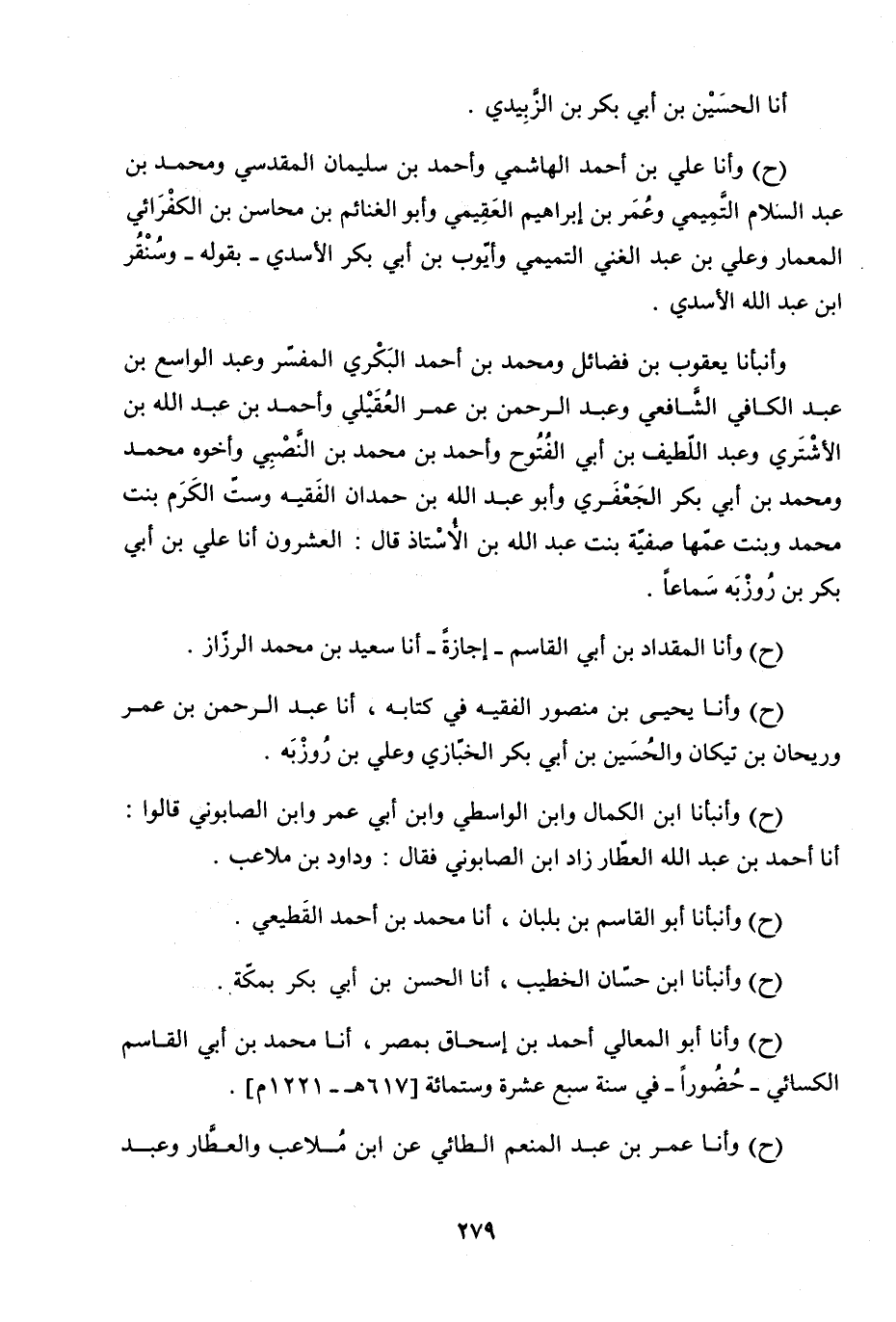 وَأَنْبَأَنَا يَعْقُوبُ بْنُ فَضَائِلَ، وَمُحَمَّدُ بْنُ أَحْمَدَ الْبَكْرِيُّ الْمُفَسِّرُ، وَعَبْدُ الْوَاسِعِ بْنُ عَبْدِ الْكَافِي الشَّافِعِيُّ، وَعَبْدُ الرَّحْمَنِ بْنُ عُمَرَ الْعُقَيْلِيُّ، وَأَحْمَدُ بْنُ عَبْدِ اللَّهِ بْنِ الأَشْتَرِيِّ، وَعَبْدُ اللَّطِيفِ بْنُ أَبِي الْفُتُوحِ، وَأَحْمَدُ بْنُ مُحَمَّدِ بْنِ النَّصْبِيِّ، وَأَخُوهُ مُحَمَّدٌ، وَمُحَمَّدُ بْنُ أَبِي بَكْرٍ الْجَعْفَرِيُّ، وَأَبُو عَبْدِ اللَّهِ بْنُ حَمْدَانَ الْفَقِيهُ، وَسِتُّ الْكَرَمِ بِنْتُ مُحَمَّدٍ، وَبِنْتُ عَمِّهَا صَفِيَّةُ بِنْتُ عَبْدِ اللَّهِ بْنِ الأُسْتَاذِ، قَالَ: الْعِشْرُون أنا عَليُّ بْنُ أَبِي بَكْرِ بْنِ رُوزْبَةَ، سَمَاعًا.