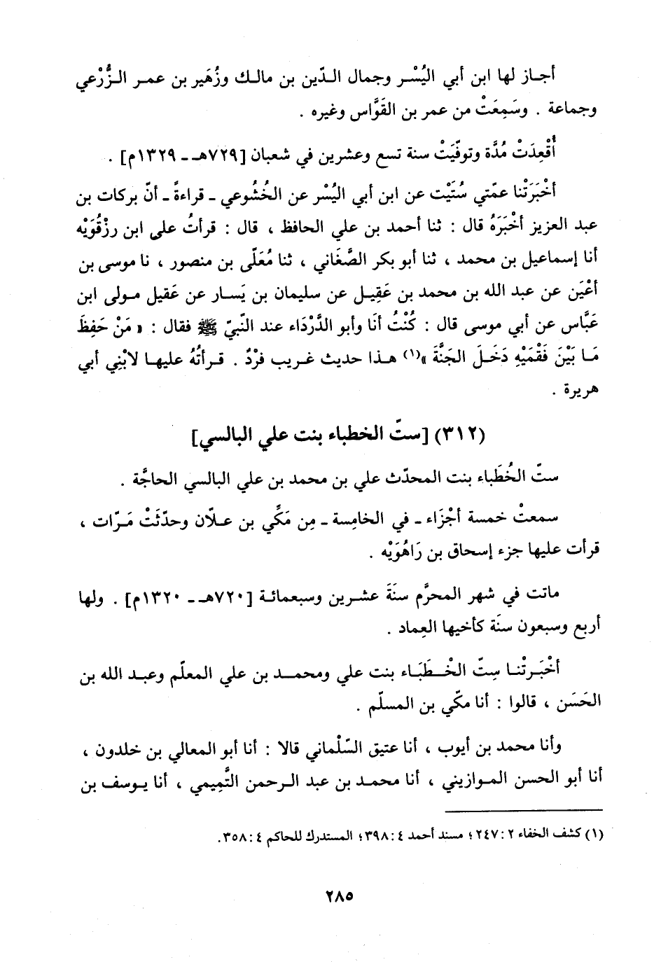 سِتُّ الْخُطَبَاءِ بِنْتُ الْمُحَدِّثِ عَلِيِّ بْنِ مُحَمَّدِ بْنِ عَلِيٍّ الْبَالِسِيِّ الْحَاجَّةُ