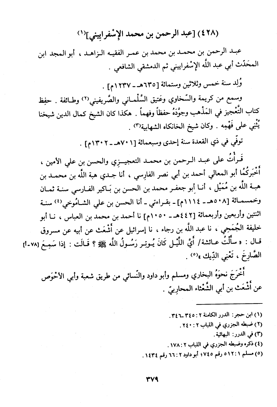 عَبْدُ الرَّحْمَنِ بْنُ مُحَمَّدِ بْنِ مُحَمَّدِ بْنِ عُمَرَ الْفَقِيهُ الزَّاهِدُ أَبُو الْمَجْدِ ابْنُ الْمُحَدِّثِ أَبِي عَبْدِ اللَّهِ الإِسْفَرَايِينِيِّ ثُمَّ الدِّمَشْقِيِّ الشَّافِعِيِّ
