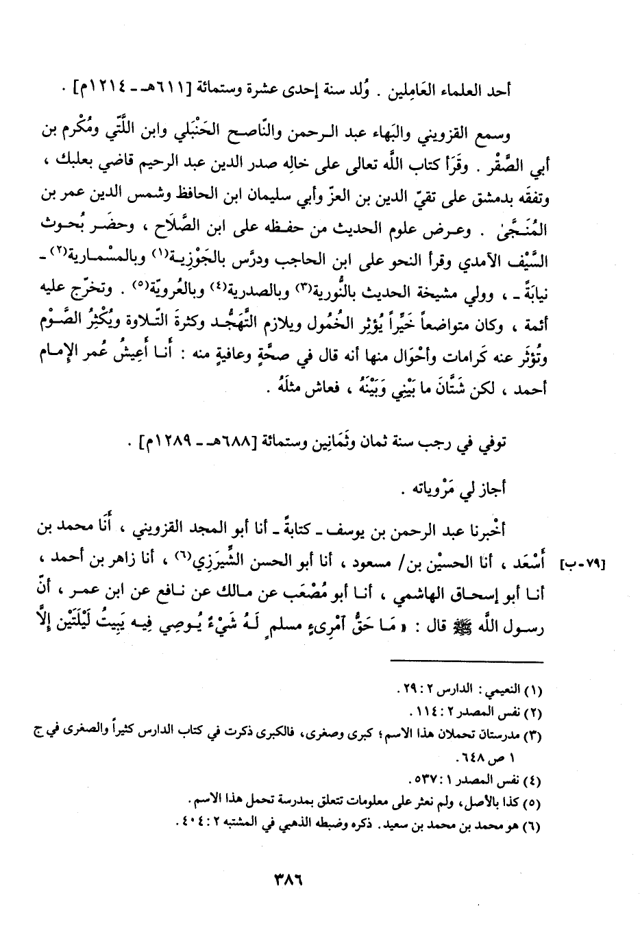 وَسَمِعَ الْقَزْوِينِيَّ، وَالْبَهَاءَ عَبْدَ الرَّحْمَنِ، وَالنَّاصِحَ الْحَنْبَلِيَّ، وَابْنَ اللَّتِّيِّ، وَمُكْرَمَ بْنَ أَبِي الصَّقْرِ.