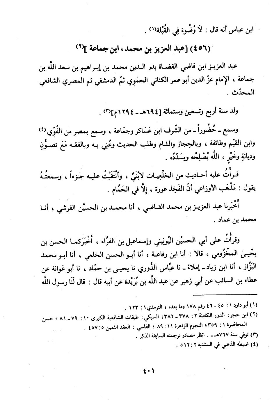 عَبْدُ الْعَزِيزِ ابْنُ قَاضِي الْقُضَاةِ بَدْرِ الدِّينِ مُحَمَّدِ بْنِ إِبْرَاهِيمَ بْنِ سَعْدِ اللَّهِ بْنِ جَمَاعَةَ الإِمَامُ عِزُّ الدِّينِ أَبُو عُمَرَ الْكِنَانِيُّ الْحَمَوِيُّ ثُمَّ الدِّمَشْقِيُّ ثُمَّ الْمِصْرِيُّ الشَّافِعِيُّ الْمُحَدِّثُ