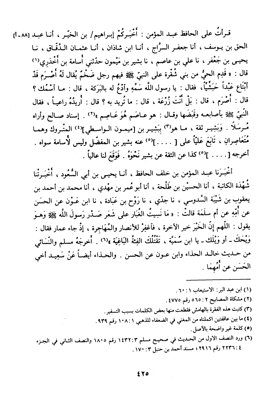 وَبَشِيرٌ ثِقَةٌ، مَا هُوَ بِبَشِيرِ بْنِ مَيْمُونٍ الْوَاسِطِيِّ الْمَتْرُوكُ وَهُمَا مُتَعَاصِرَانِ، تَابَعَ عَلِيًّا عَلَى............