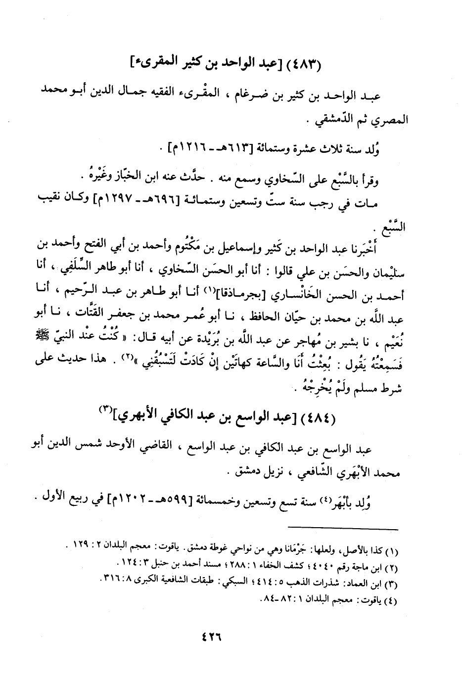 عَبْدُ الْوَاحِدِ بْنُ كَثِيرِ بْنِ ضِرْغَامَ، الْمُقْرِئُ الْفَقِيهُ جَمَالُ الدِّينِ أَبُو مُحَمَّدٍ الْمِصْرِيُّ ثُمَّ الدِّمَشْقِيُّ