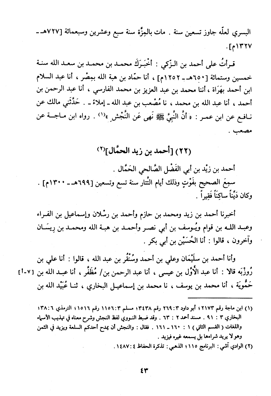 -10 - 1: 27 - قَرَأْتُ عَلَى أَحْمَدَ بْنِ الزَّكِيِّ، أَخْبَرَكَ مُحَمَّدُ بْنُ مُحَمَّدِ بْنِ سَعْدِ اللَّهِ، سَنَةَ خَمْسِينَ وَسِتِّ مِائَةٍ، أنا حَمَّادُ بْنُ هِبَةِ اللَّهِ، بِمِصْرَ، أنا عَبْدُ السَّلامِ بْنُ أَحْمَدَ، بِهَرَاةَ، أنا مُحَمَّدُ بْنُ عَبْدِ الْعَزِيزِ بْنِ مُحَمَّدٍ الْفَارِسِيُّ، أنا عَبْدُ الرَّحْمَنِ بْنُ أَحْمَدَ، أنا عَبْدُ اللَّهِ بْنُ مُحَمَّدٍ، نا مُصْعَبُ بْنُ عَبْدِ اللَّهِ، إِمْلاءً، حَدَّثَنِي مَالِكٌ، عَنْ نَافِعٍ، عَنِ ابْنِ عُمَرَ: أَنَّ النَّبِيَّ صَلَّى اللَّهُ عَلَيْهِ وَسَلَّمَ نَهَى عَنِ النَّجْشِ