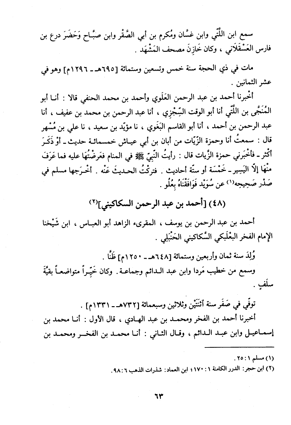 أَحْمَدُ بْنُ عَبْدِ الرَّحْمَنِ بْنِ يُوسُفَ الْمُقْرِئُ الزَّاهِدُ أَبُو الْعَبَّاسِ ابْنُ شَيْخِنَا الإِمَامِ الْفَخْرِ الْبَعْلَبَكِّيِّ السَّكَاكِينِيِّ الْحَنْبَلِيِّ