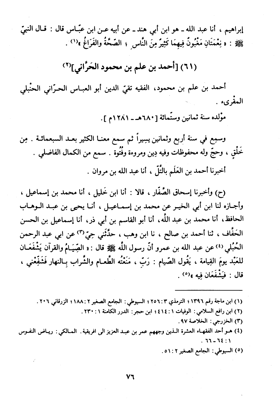 أَحْمَدُ بْنُ عَلَمِ بْنِ مَحْمُودٍ الْفَقِيهُ تَقِيُّ الدِّينِ أَبُو الْعَبَّاسِ الْحَرَّانِيُّ الْحَنْبَلِيُّ الْمُقْرِئُ