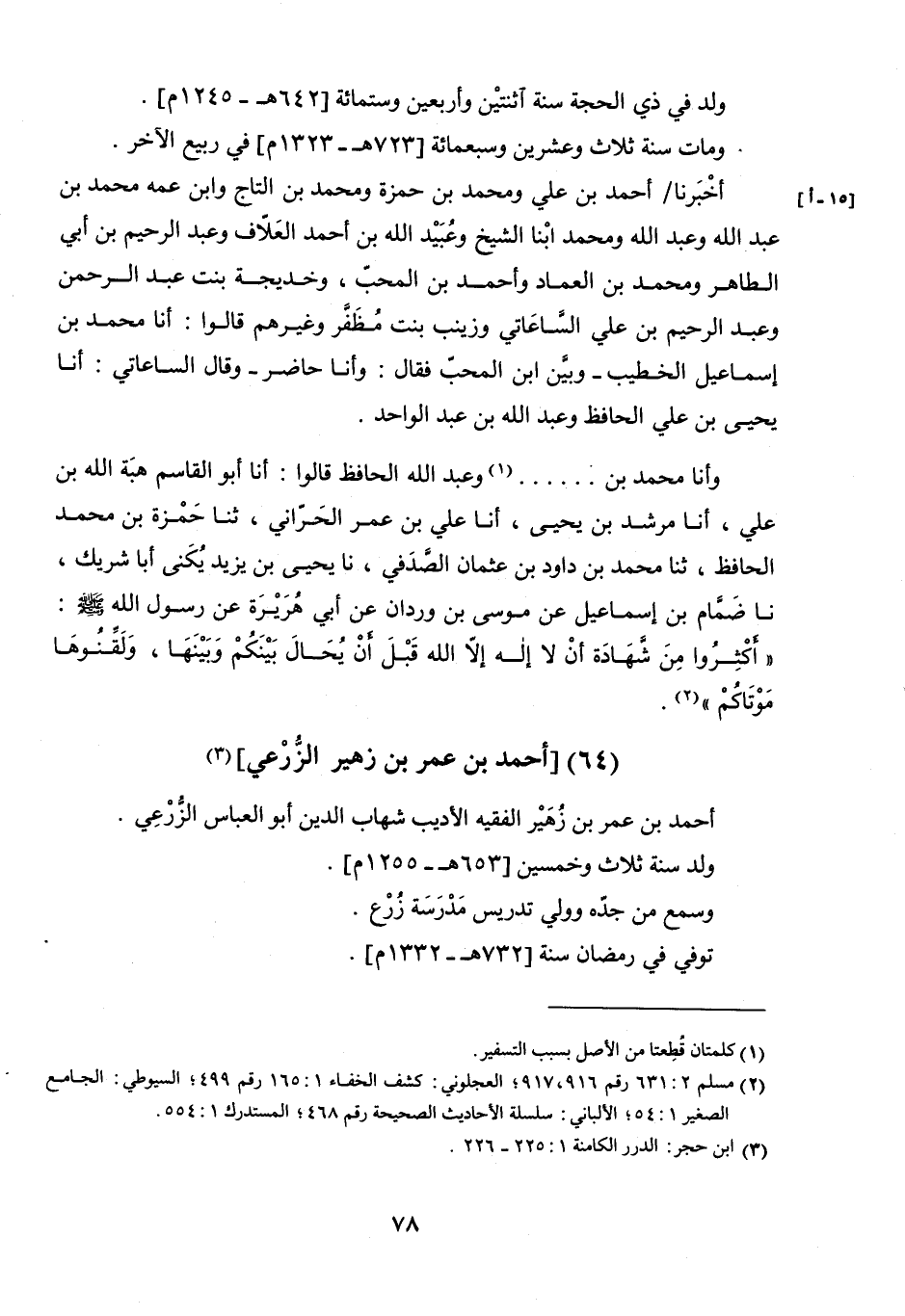 أَحْمَدُ بْنُ عُمَرَ بْنِ زُهَيْرٍ الْفَقِيهُ الأَدِيبُ شِهَابُ الدِّينِ أَبُو الْعَبَّاسِ الزُّرْعِيُّ