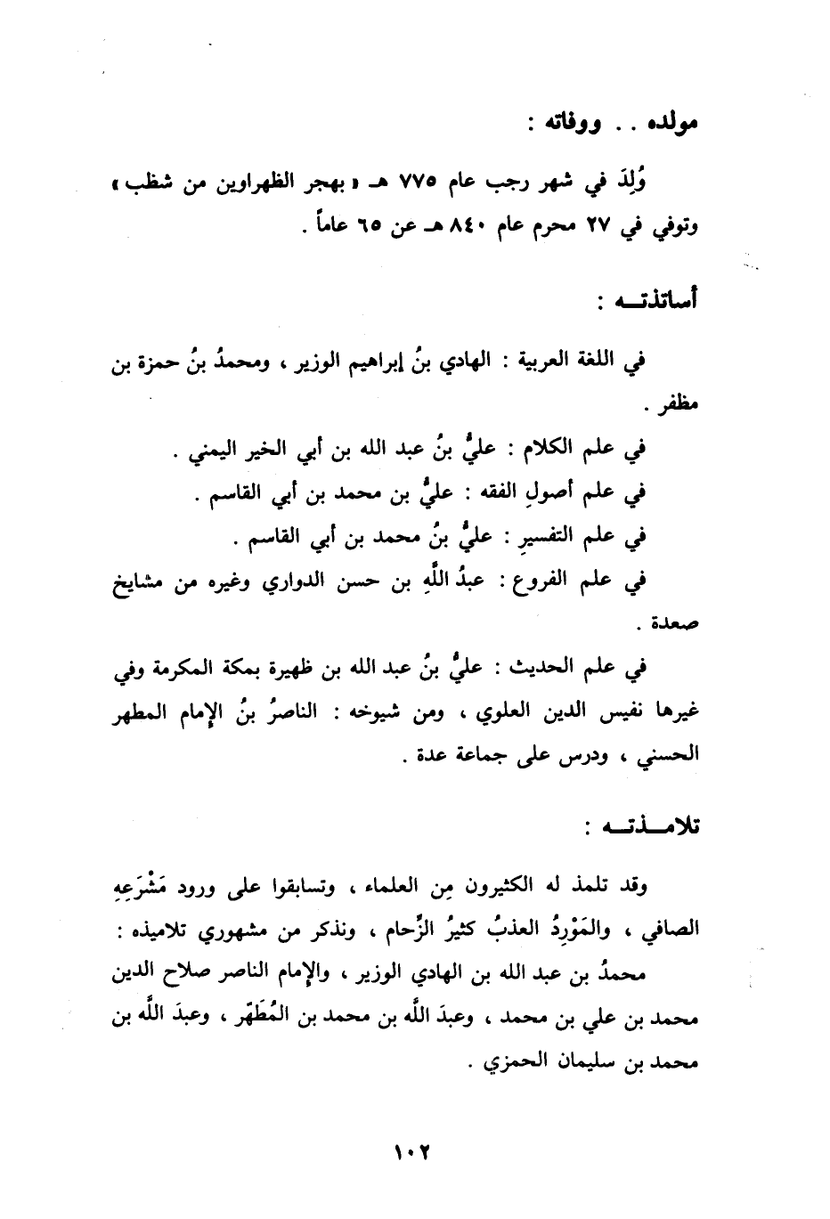 في اللغة العربية: الهادي بنُ إبراهيم الوزير، ومحمدُ بنُ حمزة بن مظفر.