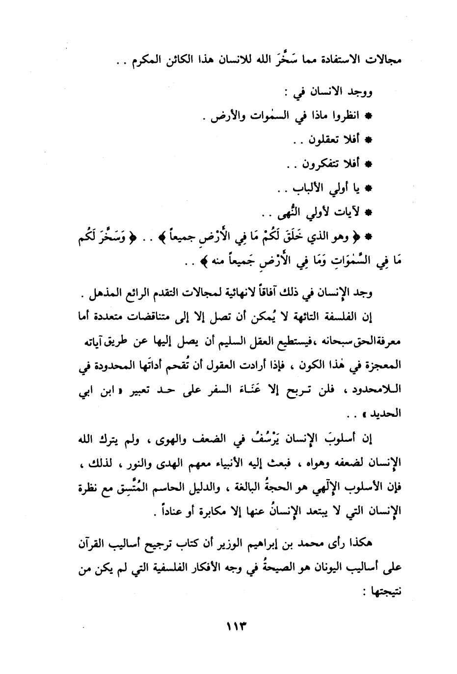هكذا رأى محمد بن إبراهيم الوزير أن كتاب ترجيح أساليب القرآن على أساليب اليونان هو الصيحةُ في وجه الأفكار الفلسفية التي لم يكن من نتيجتها: