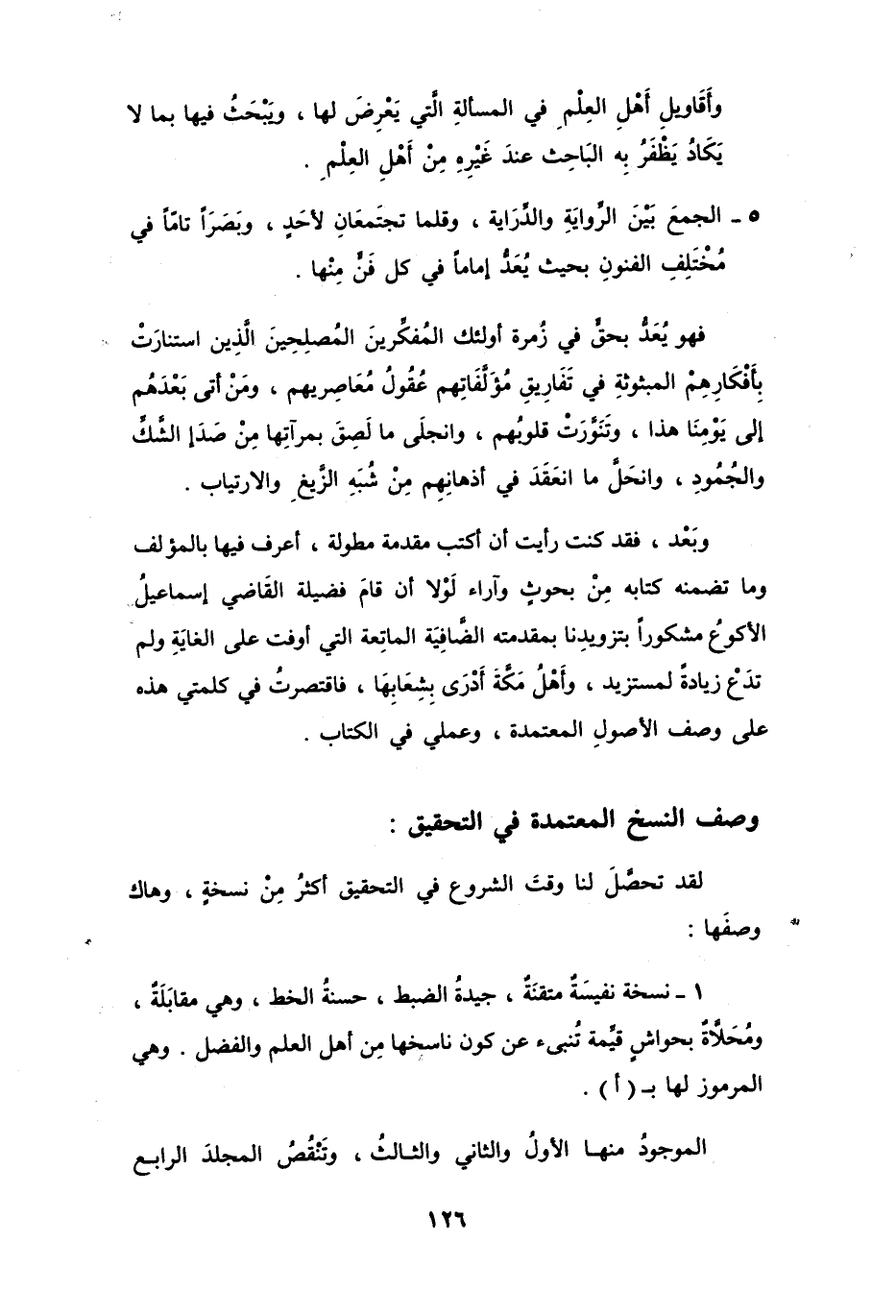 وبَعْد، فقد كنت رأيت أن أكتب مقدمة مطولة، أعرف فيها بالمؤلف وما تضمنه كتابه مِنْ بحوثٍ وآراء لَوْلا أن قامَ فضيلة القَاضي إسماعيلُ الأكوعُ مشكوراً بتزويدِنا بمقدمته الضَّافِيَة الماتِعة التي أوفت على الغايَةِ ولم تدَعْ زيادةً لمستزيد، وأَهْلُ مَكَّة أَدْرَى بِشِعَابِهَا، فاقتصرتُ في كلمتي هذه على وصف الأصولِ المعتمدة، وعملي في الكتاب.