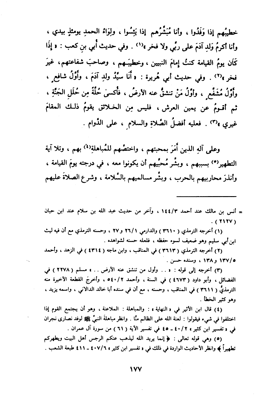 (¬5) وهي قوله تعالى: {إنما يريد الله ليذهب عنكم الرجس أهل البيت ويطهركم تطهيراً} وانظر الأحاديث الواردة في ذلك في " تفسير ابن كثير " 6/ 407 - 411 طبعة الشعب.