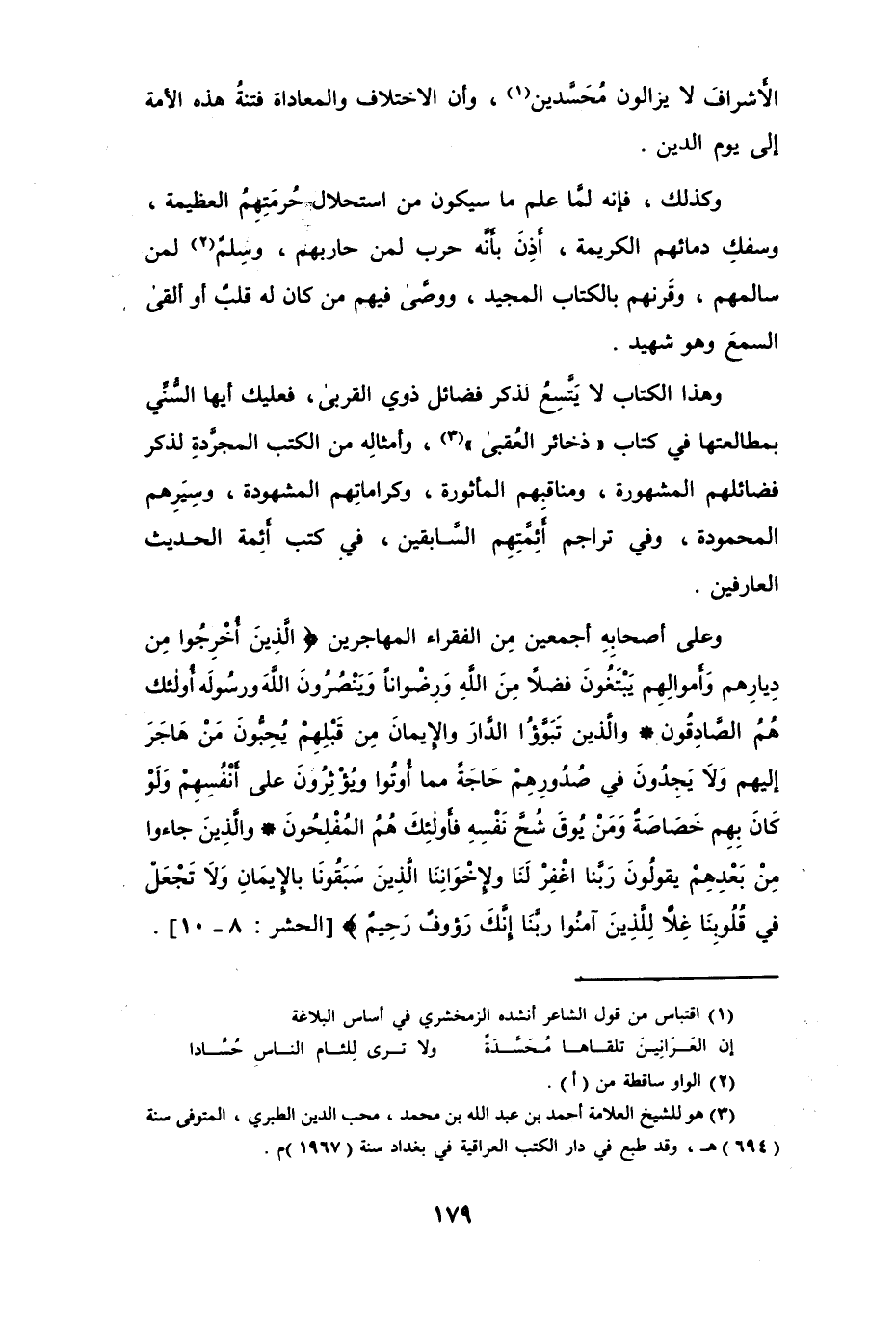 (¬3) هو للشيخ العلامة أحمد بن عبد الله بن محمد، محب الدين الطبري، المتوفى سنة (694) هـ، وقد طبع في دار الكتب العراقية في بغداد سنة (1967) م.