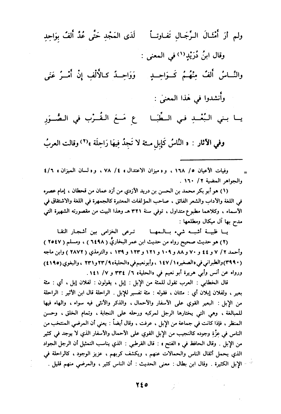 (¬1) هو أبو بكر محمد بن الحسن بن دريد الأزدي من أزد عمان من قحطان، إمام عصره في اللغة والآداب والشعر الفائق، صاحب المؤلفات المعتبرة كالجمهرة في اللغة والاشتقاق في الأسماء، وكلاهما مطبوع متداول، توفي سنة 321 هـ وهذا البيت من مقصورته الشهيرة التي مدح بها آل ميكال ومطلعها: