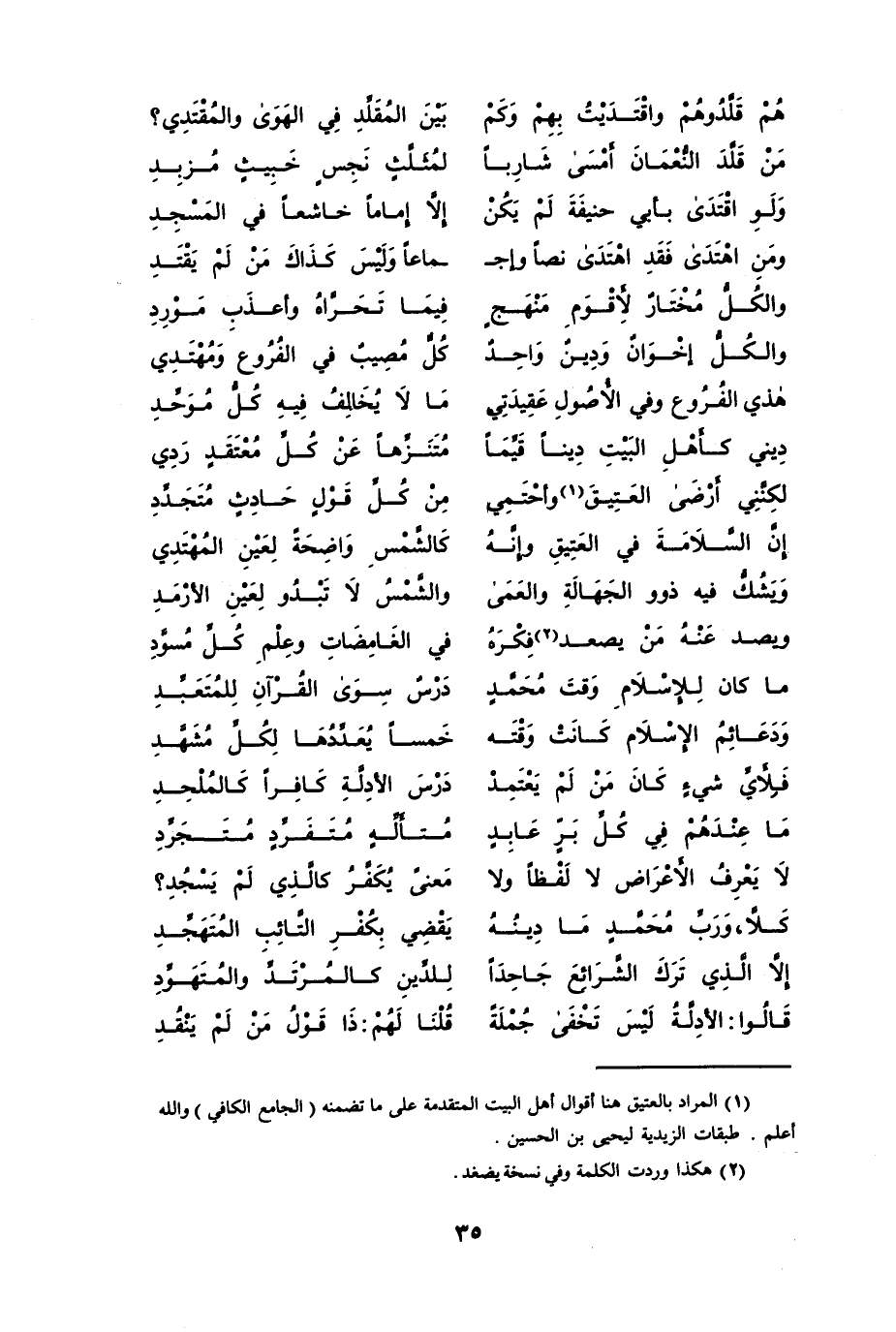 (¬1) المراد بالعتيق هنا أقوال أهل البيت المتقدمة على ما تضمنه (الجامع الكافي) والله أعلم. طبقات الزيدية ليحيى بن الحسين.
